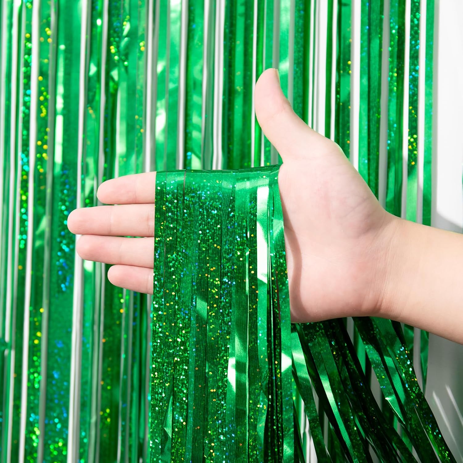- Premium Material: This Laser Green foil curtain backdrop is made of stable tinsel, non-fading, stay shiny and reusable. Unfold it and then enjoy your glittering party