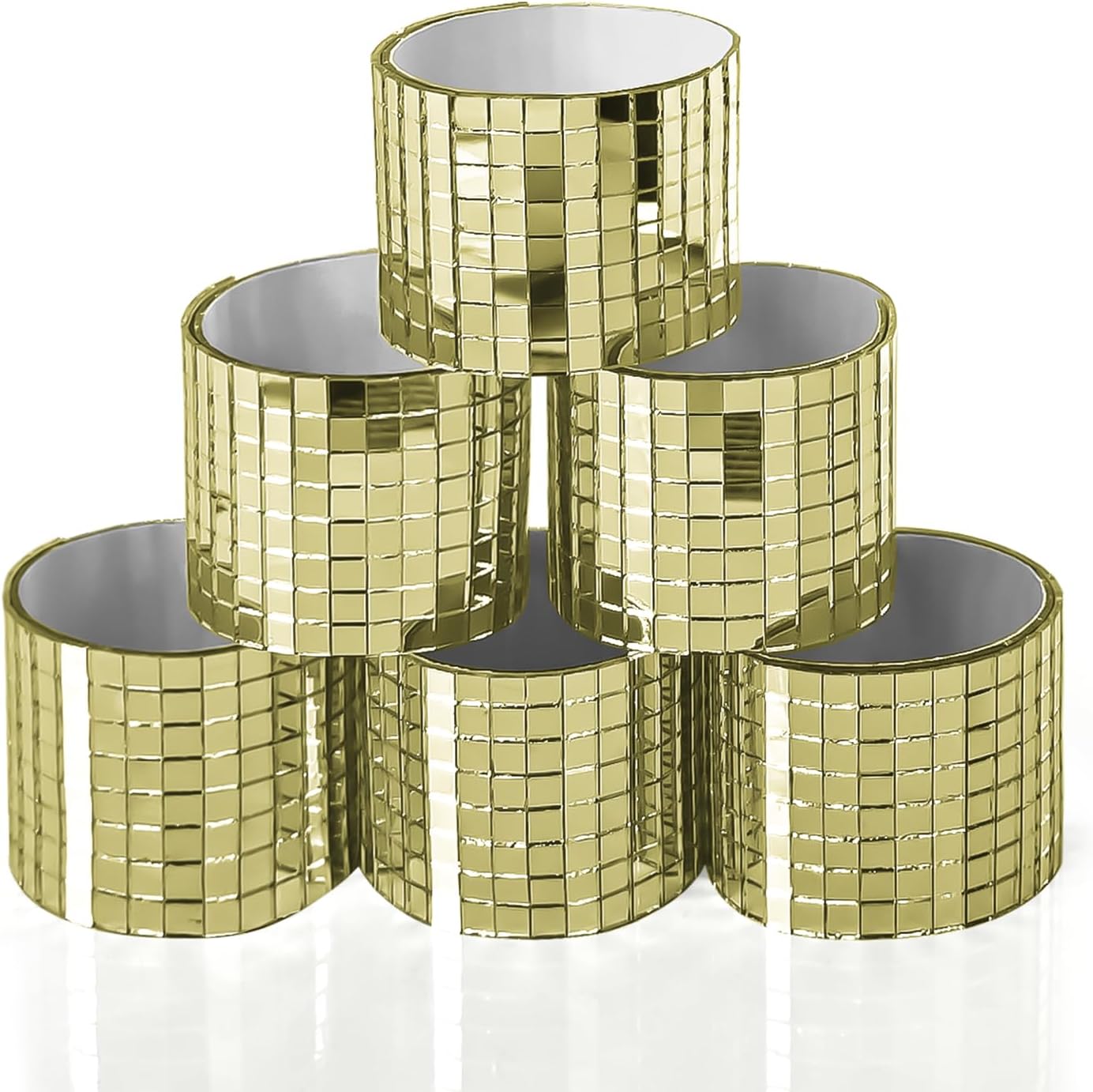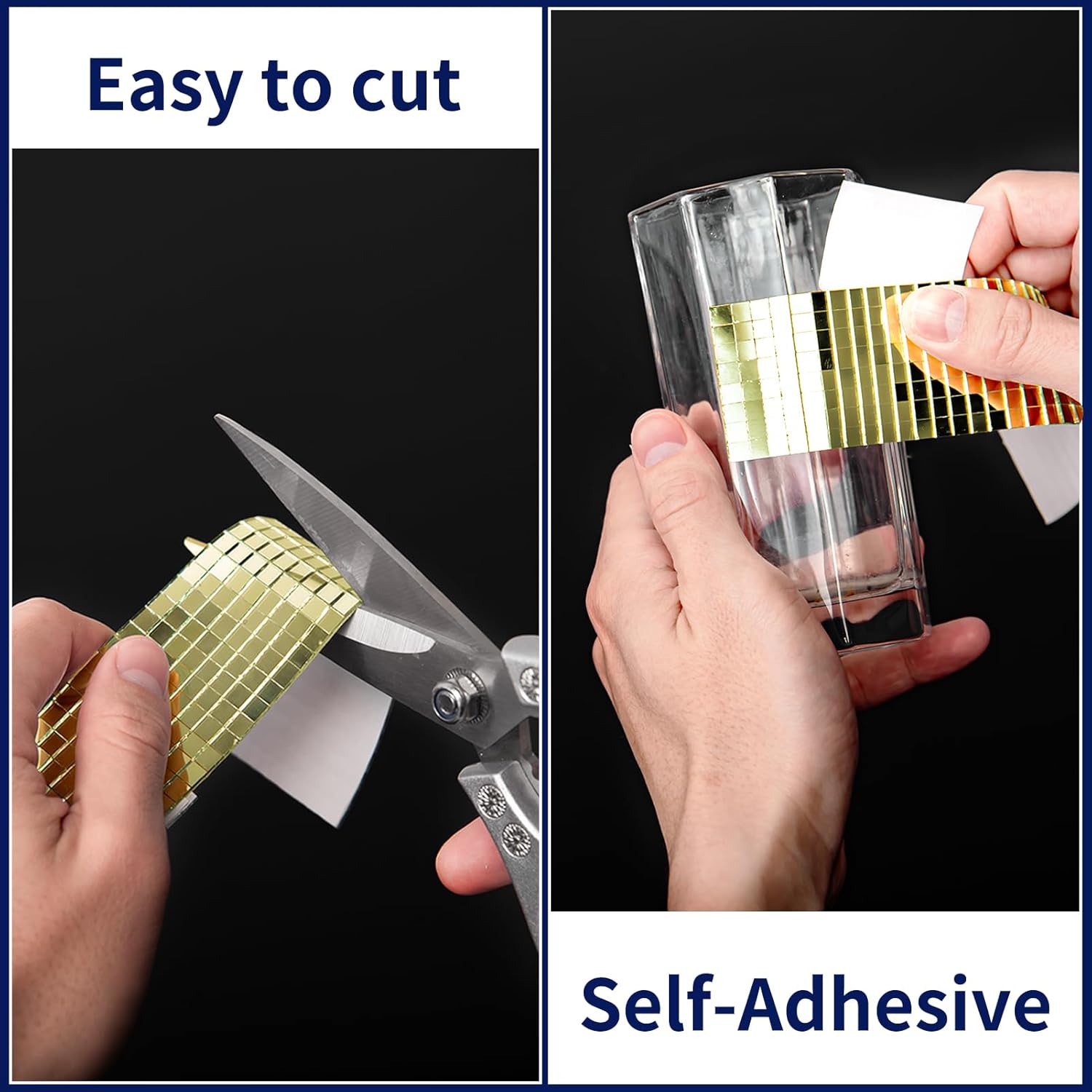 Art3dwallpanels 6 Pack Self-Adhesive Glass Mirror Mosaic Tiles 2364 Pieces Small Square Mirror Tiles Sticker for DIY Craft Decoration, Disco Ball Gold