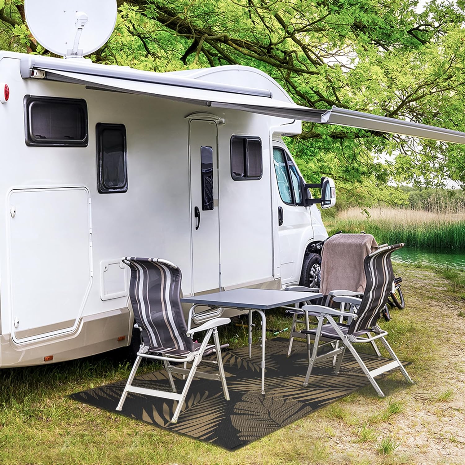 - Perfect Choice For RV Camping: Woven from lightweight plastic straws, these RV outdoor rugs fold compactly to fit in the included carry bag. This portable waterproof outdoor rug is easy to carry, with 4 corner loops and stakes to secure it. Using this camper rug reduces travel fatigue and adds plenty of space for fun — also a stylish touch for fall decor when setting up your campsite