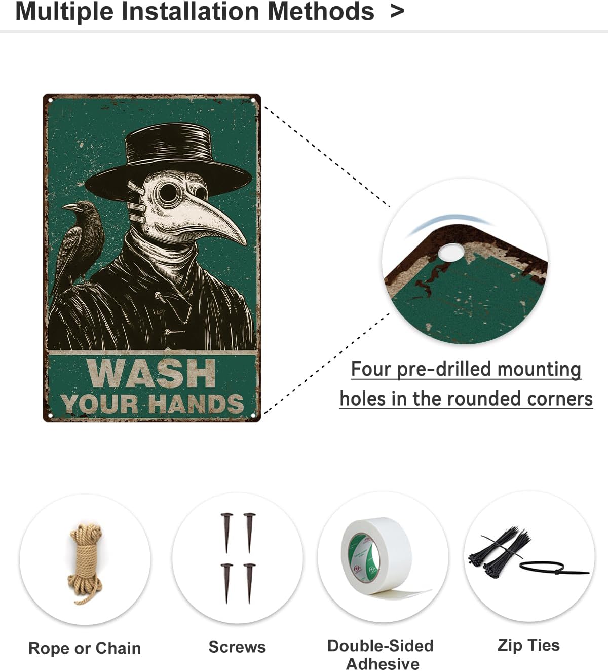 - 【Ideal Gift】This unique and cute Plague Doctor Metal Sign is the perfect gift for halloween and gothic lovers.