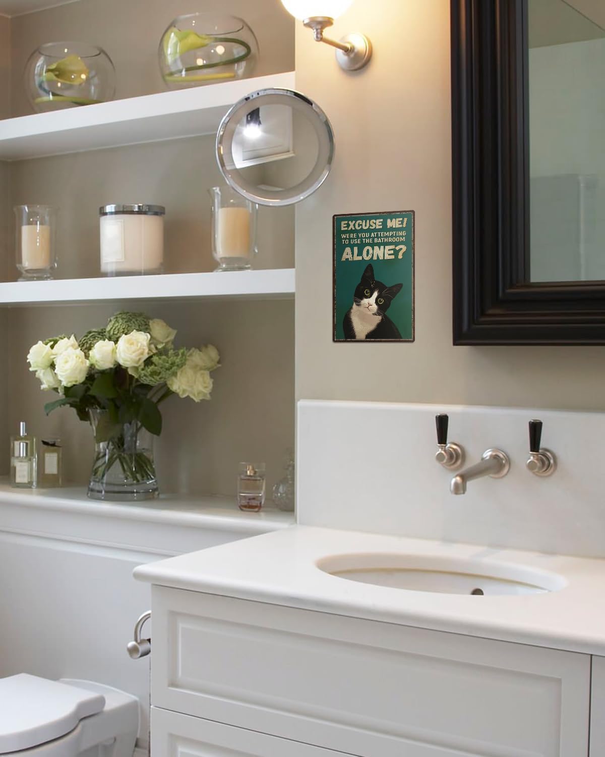 ALKB Funny Tuxedo Cat Metal Signs Black Cat Metal Poster Tuxedo Cat Lover Gift Vintage Bathroom Wall Decor 8 x 12 Inch