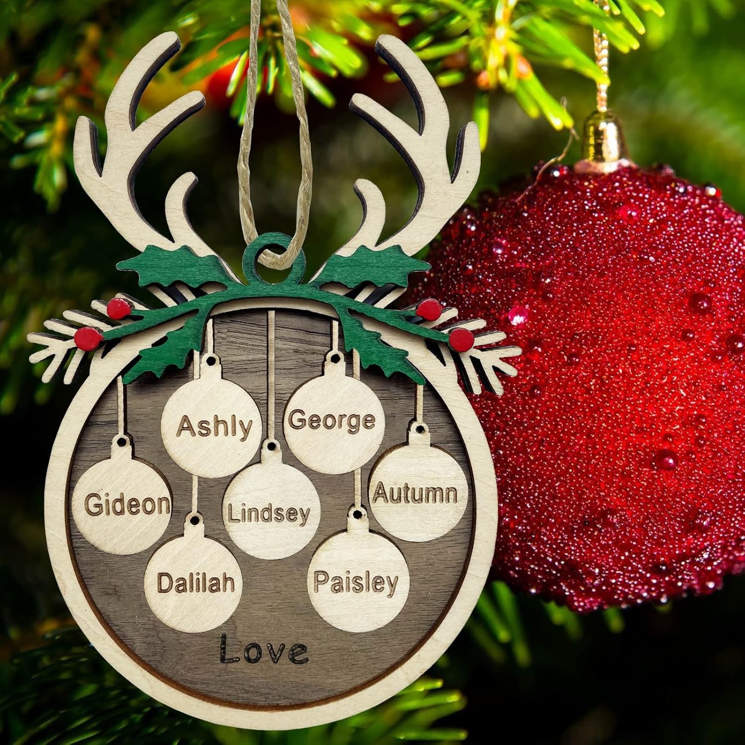 2025 Personalized Christmas Ornaments Family of 2/3/4/5/6/7/8,Custom Reindeer Christmas Wooden Ornaments Deorations with Names,Customized Xmas Ornament Tree Deorations,Personalized