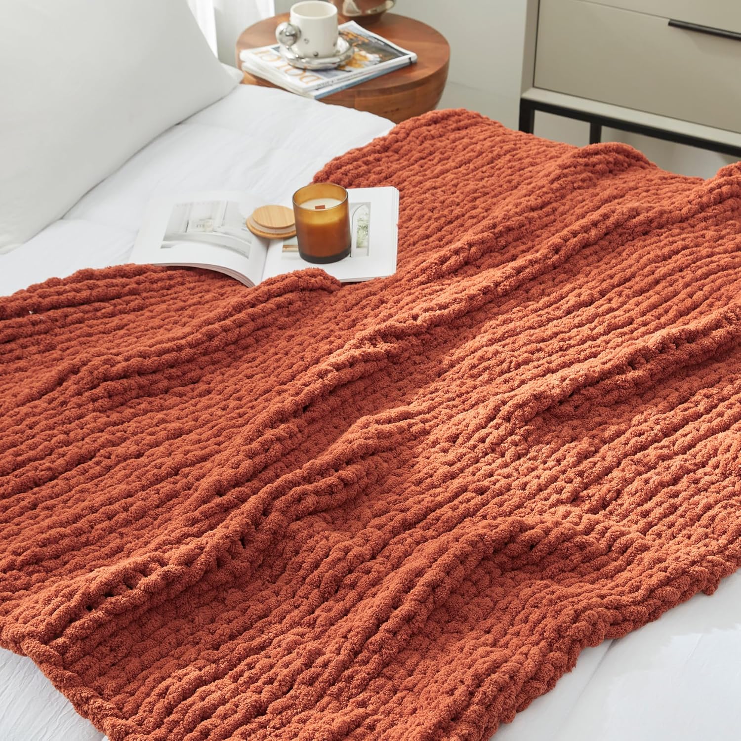 Amélie Home Chunky Knit Throw Blanket for Couch, Soft Chenille Crochet Blanket for Sofa, 50"x60", Burnt Orange