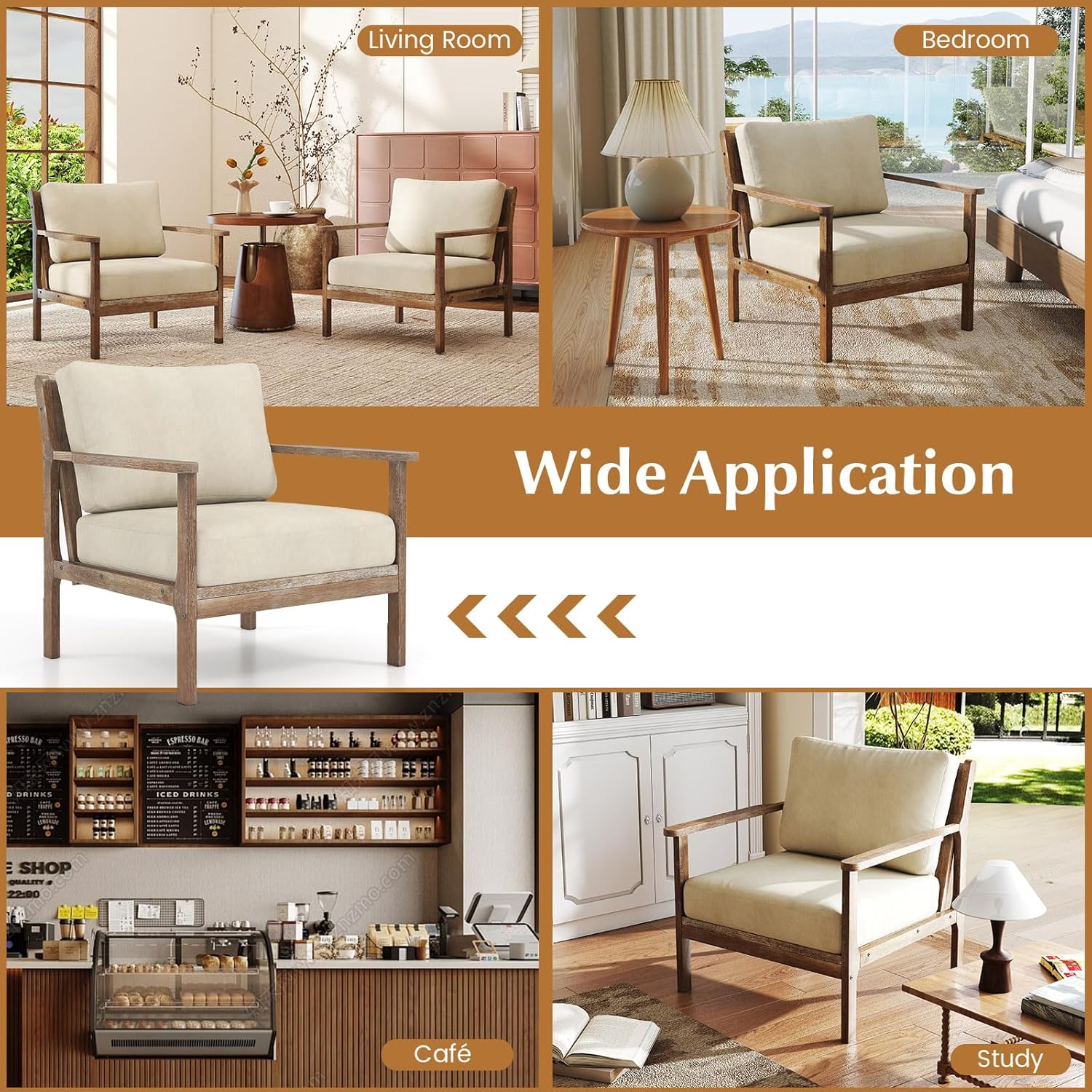 - [More Exquisite Details]: The breathable fabric upholstery ensures a skin-friendly touch and promotes airflow, and the rubber wood armrests are resistant to cracking and deformation.