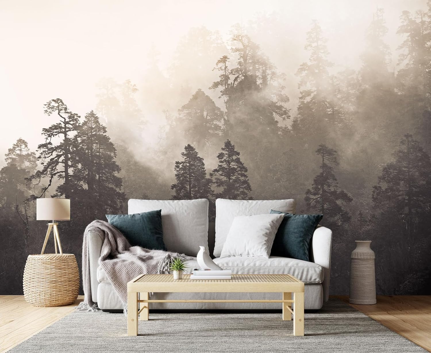 Foggy Forest Woodland Mural Wallpaper for Bedroom Living Room Misty Jungle Rainforest Trees Nature Landscape Wall Mural(Not Peel n' Stick)