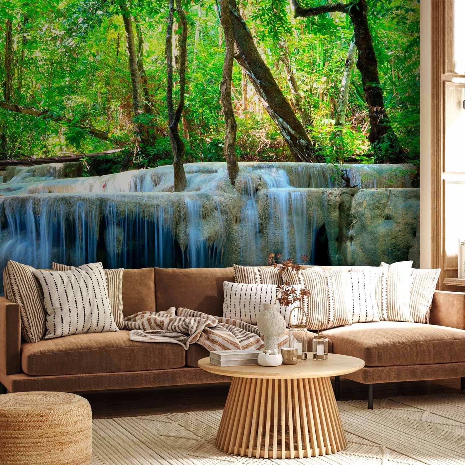 artgeist Premium Wall Mural Waterfall Landscape 216x98 in - Non-Woven Photo Wallpaper Art Print Fleece Wall Mural Decoration Poster Picture Design Nature Forest Tree Green c-B-10074-a-a