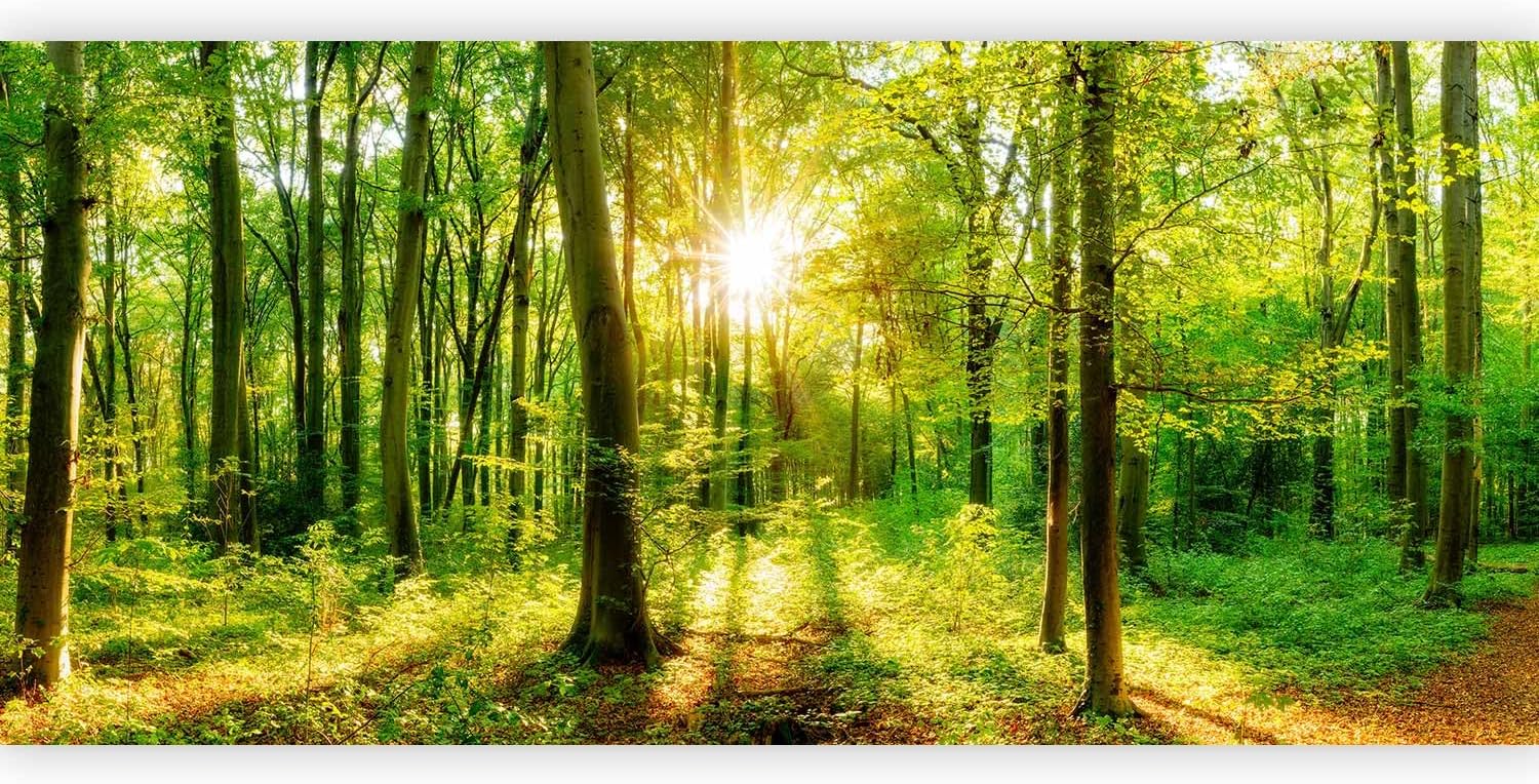 artgeist Premium Wall Mural Forest 216x98 in - Non-Woven Photo Wallpaper Art Print Fleece Wall Mural Decoration Poster Picture Design Landscape Nature Green Tree Panorama Sunshine b-B-0383-a-a