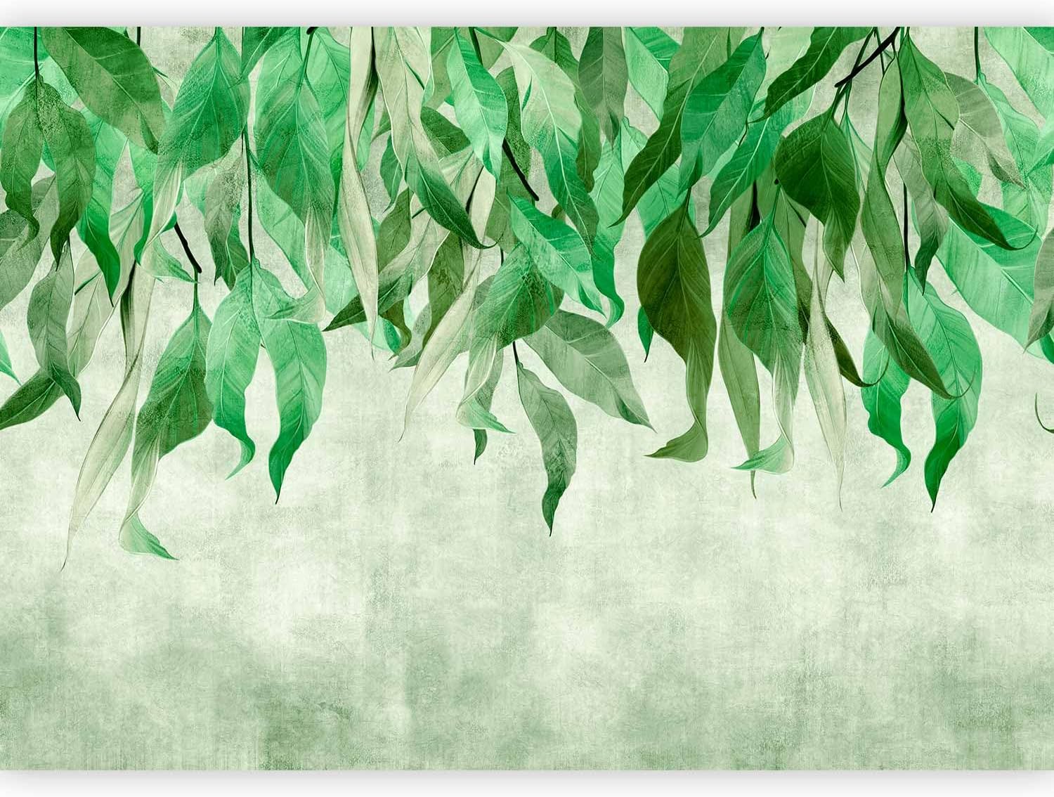 artgeist Wall Mural Hanging Leaves 193x138 in - Peel and Stick Self-Adhesive Wallpaper Removable Large Sticker Foil Wall Decor Print Picture Image Design Nature Botanical Concrete Green b-C-10146-a-a