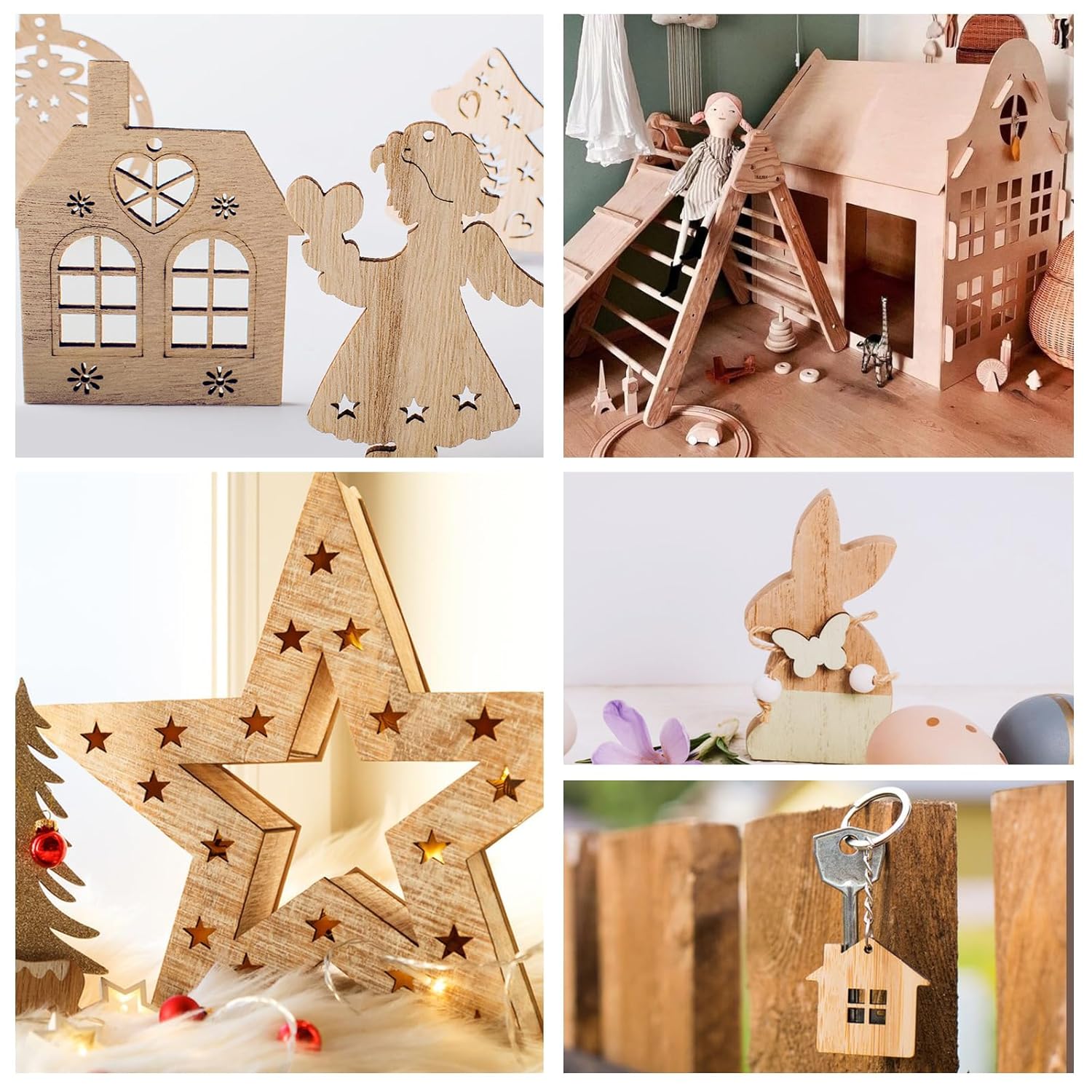 - 【DIY Gifts】High quality thin plywood board make your creations full of fun. We can make gifts during various holidays, such as Children's Day, Valentine's Day, Halloween, Thanksgiving, Christmas, and more. It is also suitable for creating small gifts for gatherings, birthdays, weddings, anniversaries, and more.