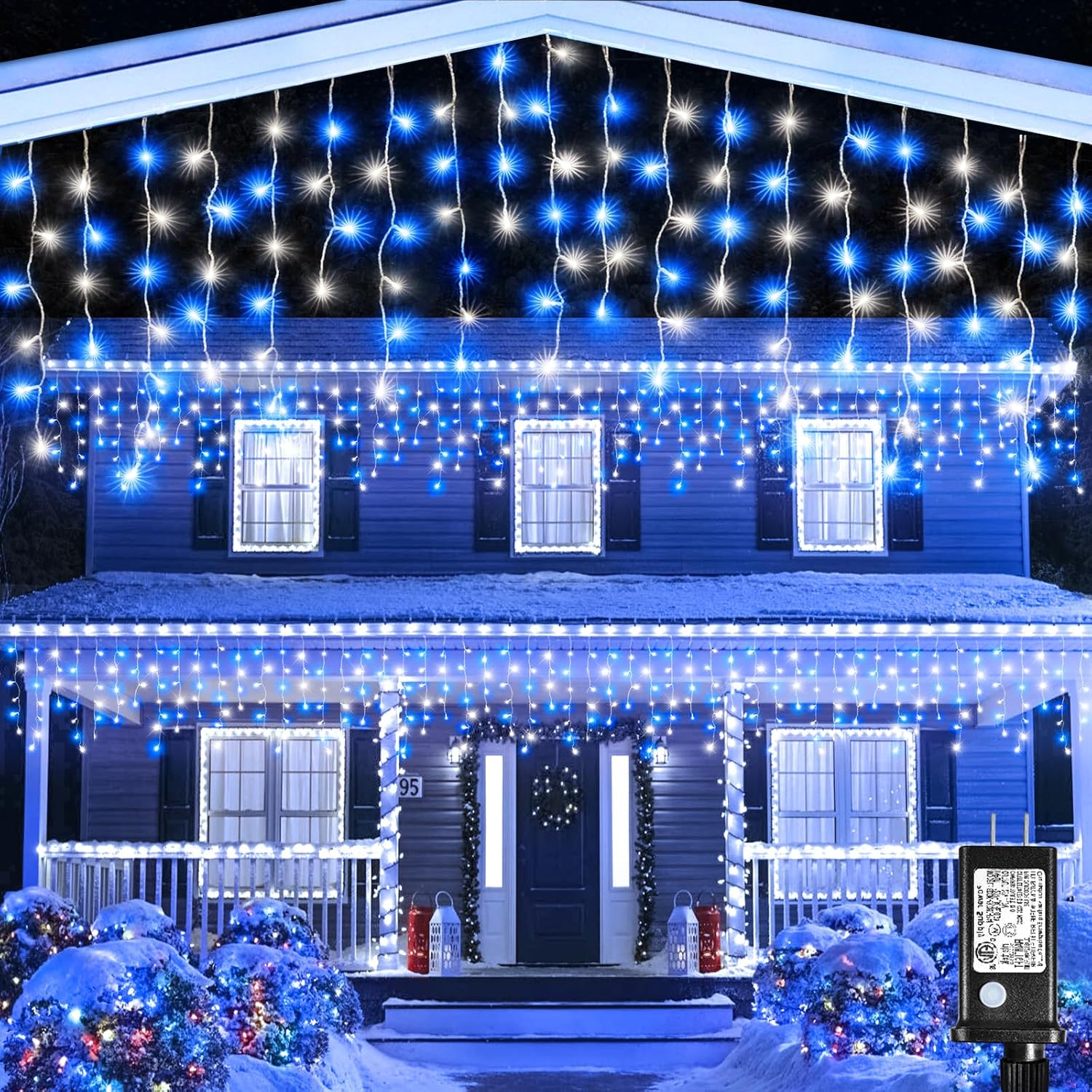 66FT 640 LED Icicle Lights for Outside, Icicle Christmas Lights Outdoor with 8 Modes Timers, Waterproof Plug in Twinkle String Light for Yard Eave Patio Party Holiday Decorations, Blue White