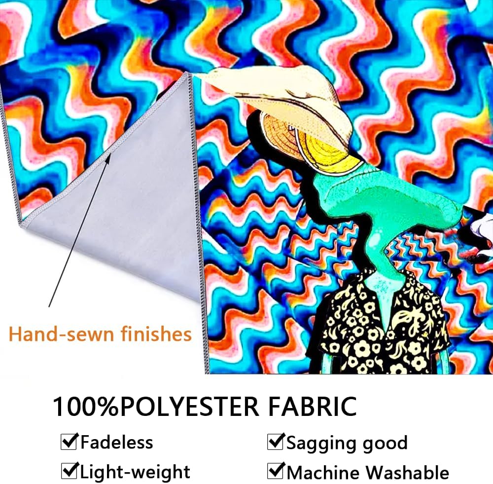 • šŸŒž High-Quality Material: Made from 100% polyester, ADDWel tapestry is durable, lightweight, and easy to clean. It can be washed and ironed at low temperatures without losing its colors. The fabric is also soft to the touch and won't irritate your skin, making it perfect for use as a bedspread, wall hanging, or beach blanket.