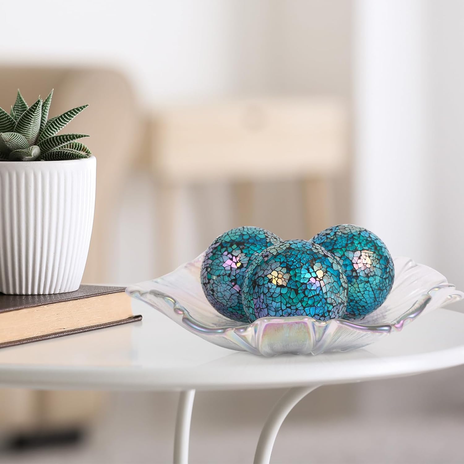 6pc Decorative Ball Set, 6cm/2.4in Mosaic Glass Orbs Centerpiece Balls for Decorating Tables & Wedding Parties (Dazzle Blue)