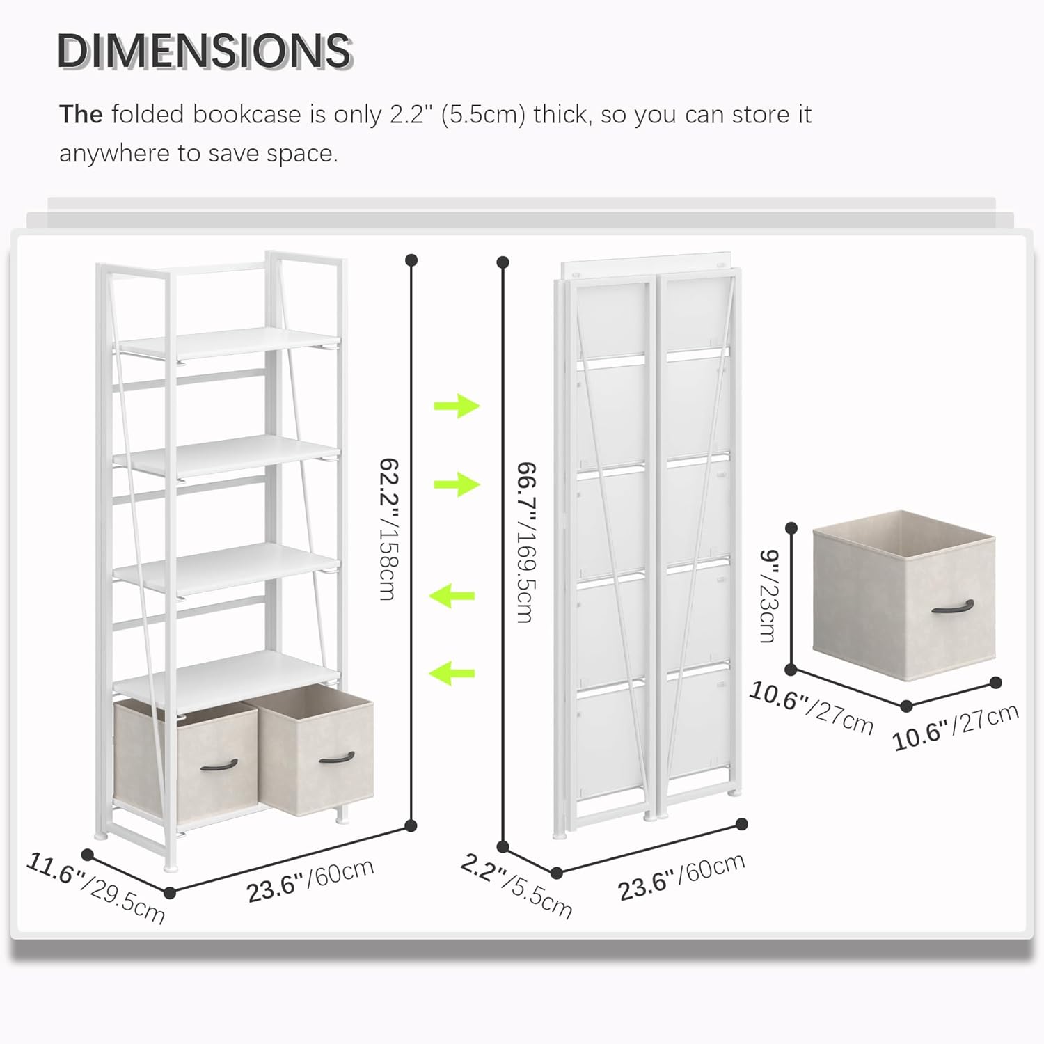 - ăStorage shelf folding sizedă23.62x2.2x66.7 inches (60x5.5x169.5cm).