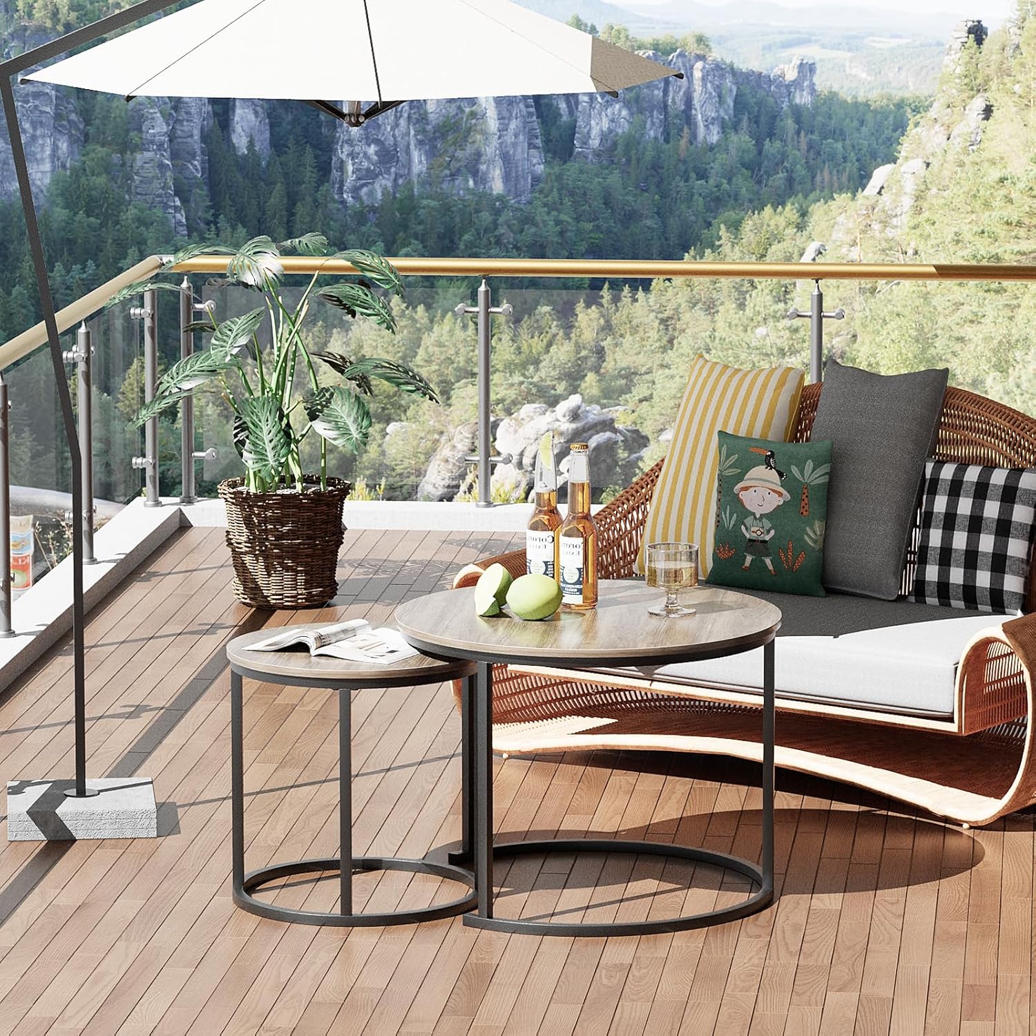 aboxoo Coffee Table Nesting Side Round Table Set of 2 End Table with Sturdy Metal Frame for Living Room Bedroom Apartment Modern Industrial Simple Nightstand,Oak