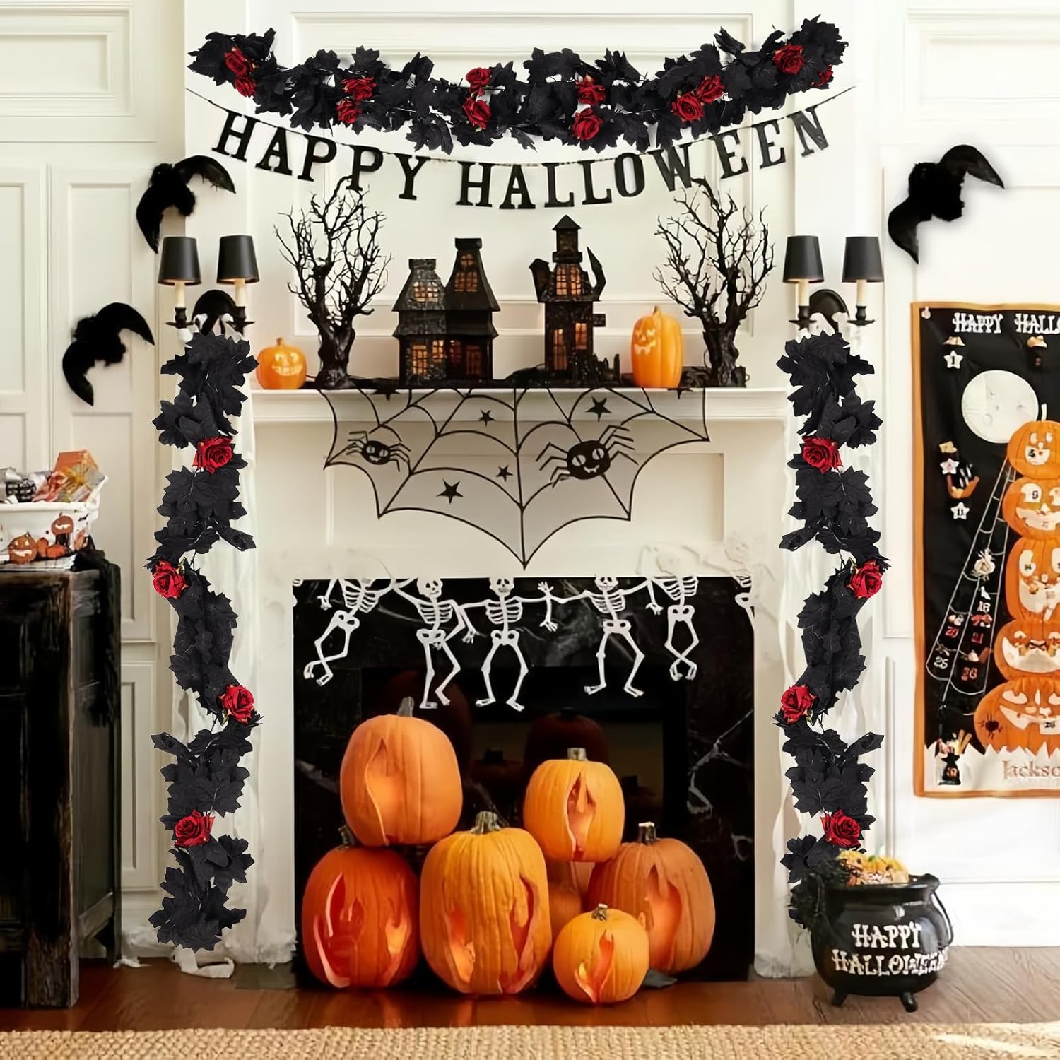 - 【Material of Black Rose Garland】:The maple leaves are made of quality plastic and silk cloth leaves ,Also the leave texture is clear that look like real leaves, the garland stems are made of flexible plastic. The black maple leaves can present a mysterious atmosphere, ideal choice to complete the Halloween decoration.