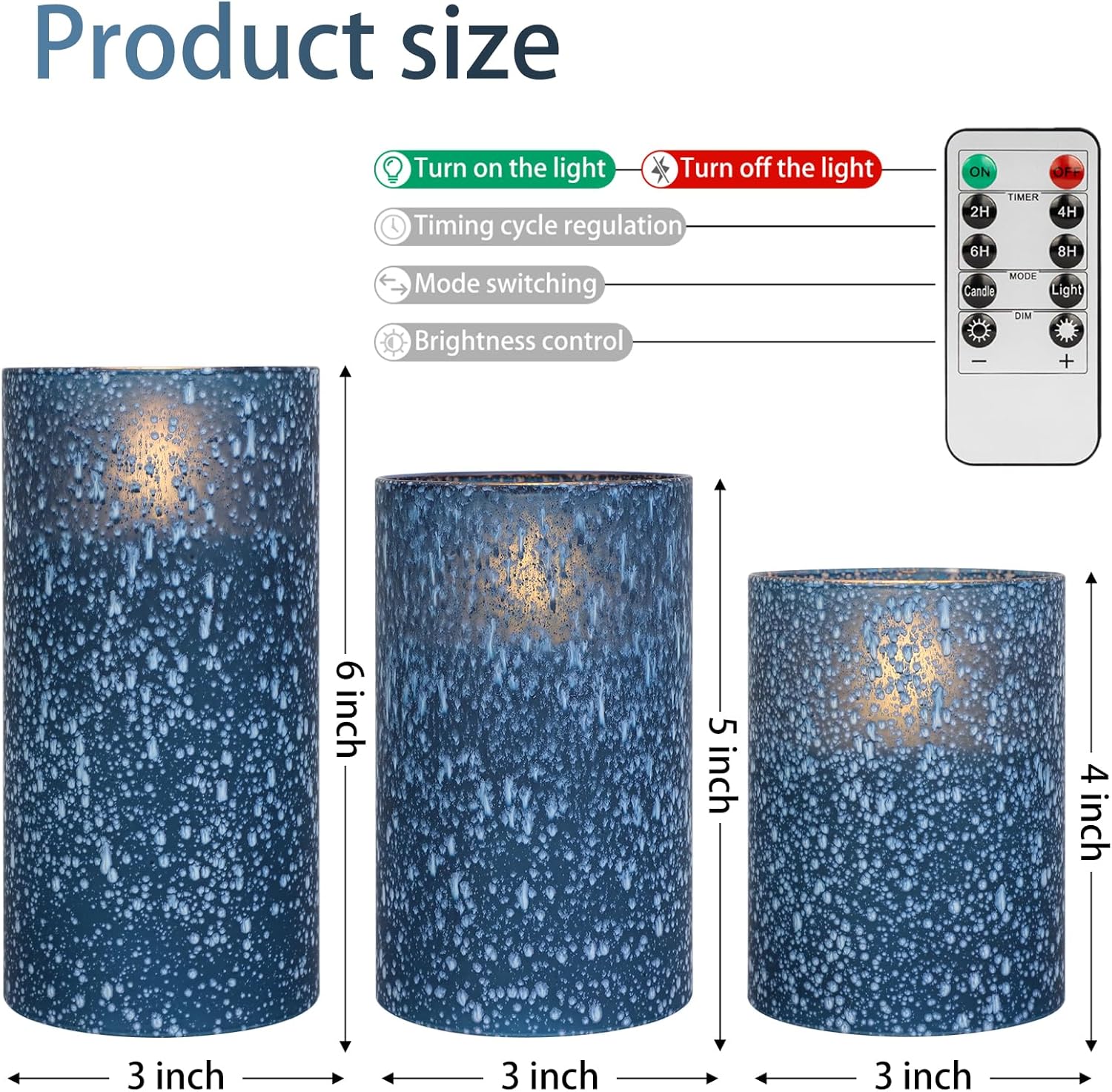 Flameless Candles with Remote - Battery Operated Candles with Timer, Flickering Real Wax LED Pillar Christmas Candles for Wedding, Table, Home Decorations (Blue, Set of 3)