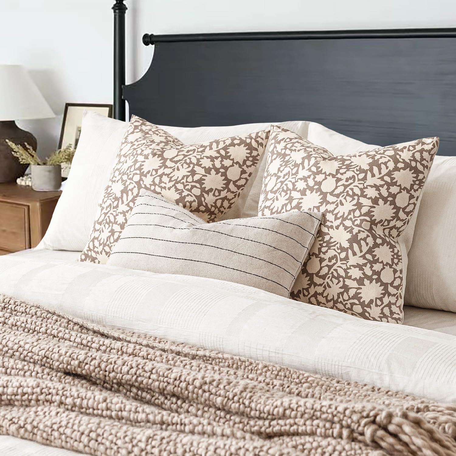 Foindtower Set of 2 Decorative Neutral Floral Throw Pillow Covers Accent Farmhouse Cushion Covers Boho Vintage Pillowcase for Couch Sofa Bedroom Living Room Home Decor Outdoor,18×18 Inch,Tan