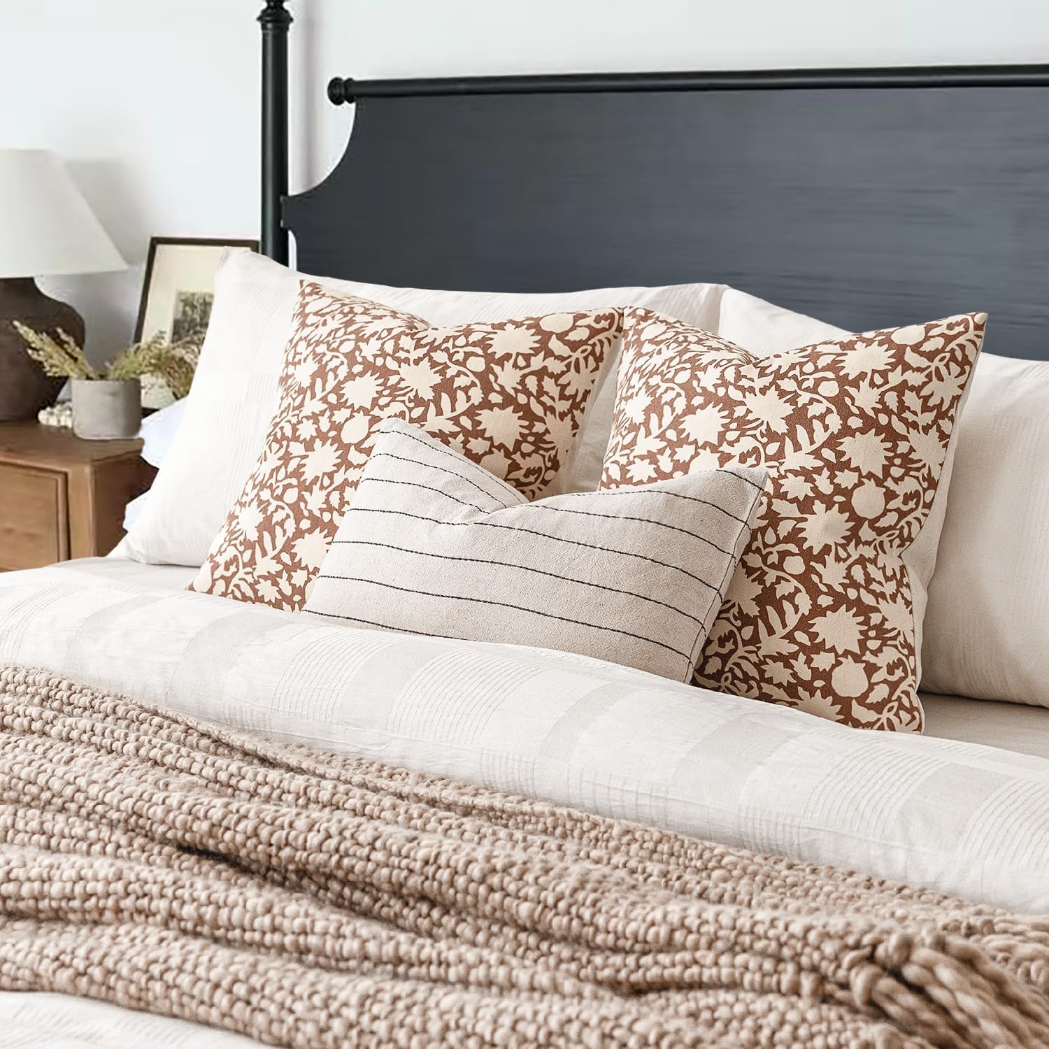 Foindtower Set of 2 Decorative Neutral Floral Throw Pillow Covers Accent Farmhouse Cushion Covers Boho Pillowcase for Couch Sofa Bedroom Living Room Home Decor Outdoor,22×22 Inch,Light Orange Brown