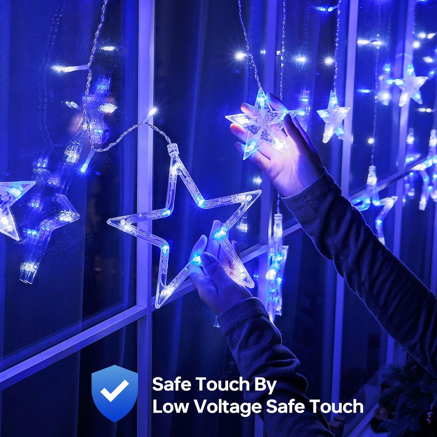 - Popular Choice &Widely Used:The Blue White star Icicle Lights are one of the most popular color options for Christmas decor.It can maximum connect with 3 sets lights extended in the mean time for more large scene display,suitable for the house eaves,party,wedding,patio,holiday,garden,ceilings,shopping center decorations.