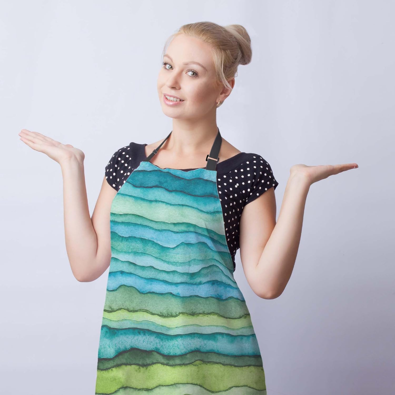 Garden Apron for Women Blue and Green Waves Cute Aprons for Men for Kitchen Cooking Restaurant BBQ Painting Crafting Gardening 27” (W) x 31” (H), Waterproof Apron