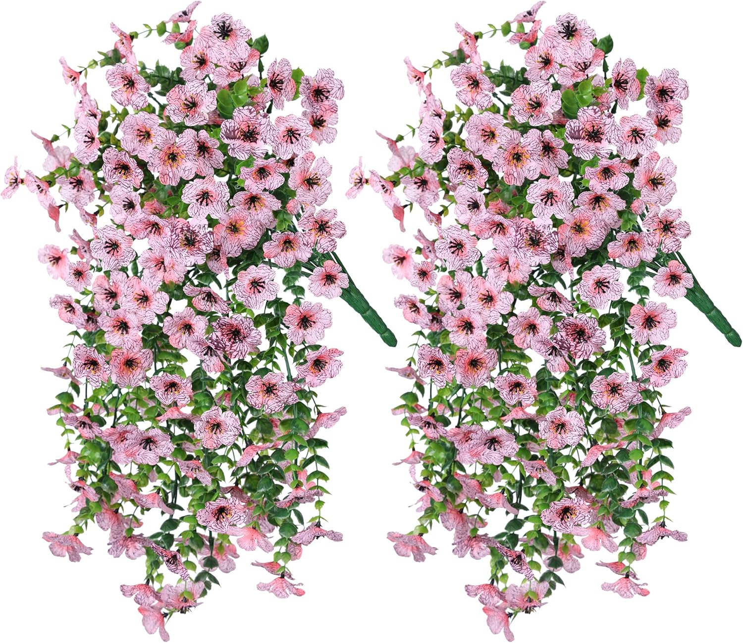 Artificial Faux Outdoor Outside Flowers Plants, 2 PCS Fake Silk UV Resistant Look Real Pink Daisy Trailing Vines for Front Door Porch Planter Urn Patio Balcony Decoration