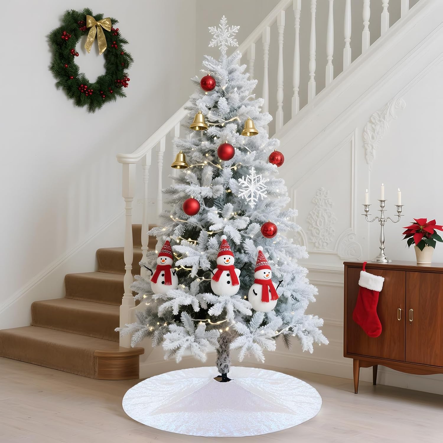 Eternal Beauty Christmas Tree Skirt, 50 Inch White Iridescent Sequin Tree Skirt Small Xmas Tree Skirt for Christmas Tree Decorations