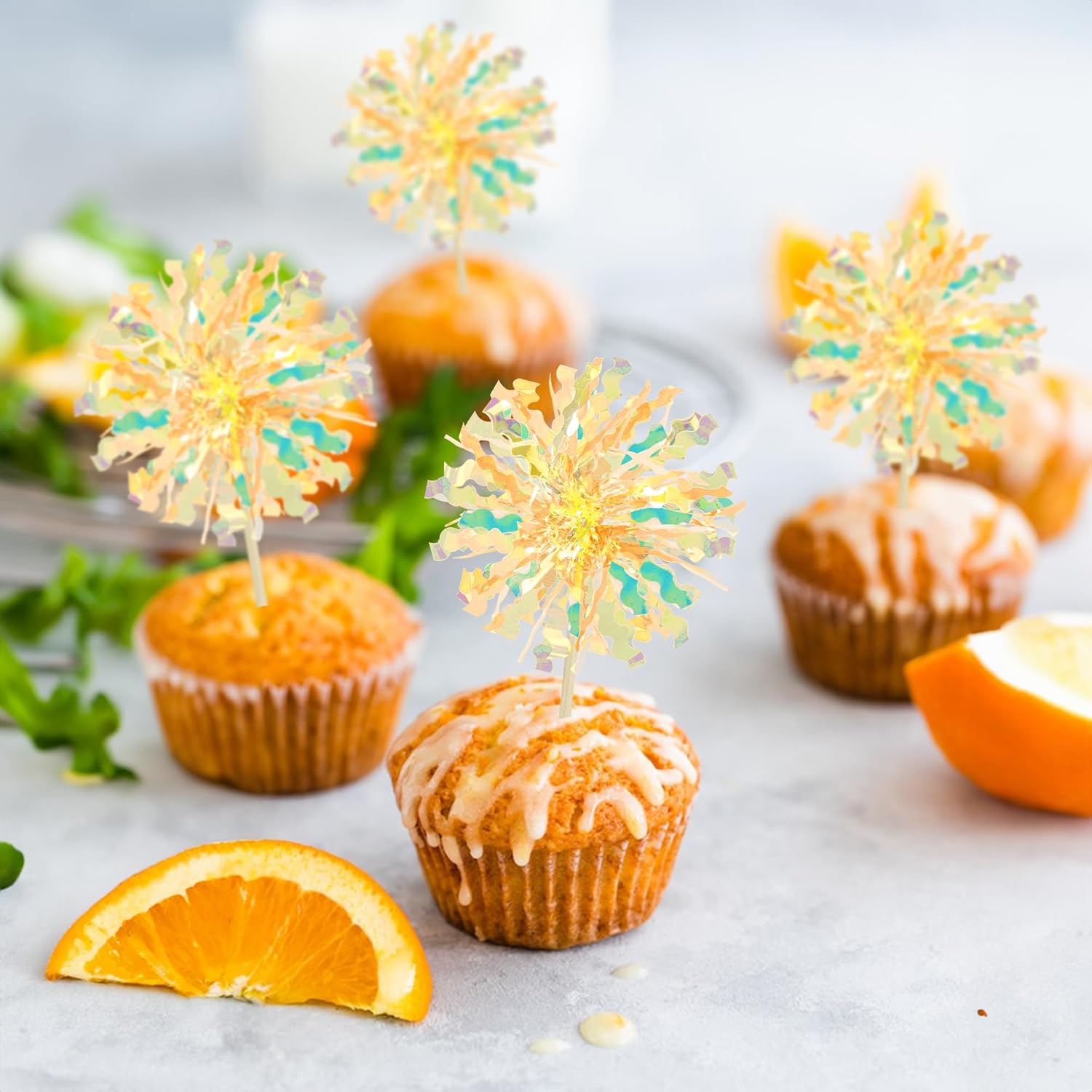 - 【NO Required】: 30Pcs Foil Firework cupcake toppers can put in the cake directly! These 30Pcs Foil Firework Cupcake toppers save your time and super easy to use. You can easily dress up your birthday theme cakes, yes! but don't stop there, put them into desserts, cookies, fruit pieces, appetizers, muffins and so much more!