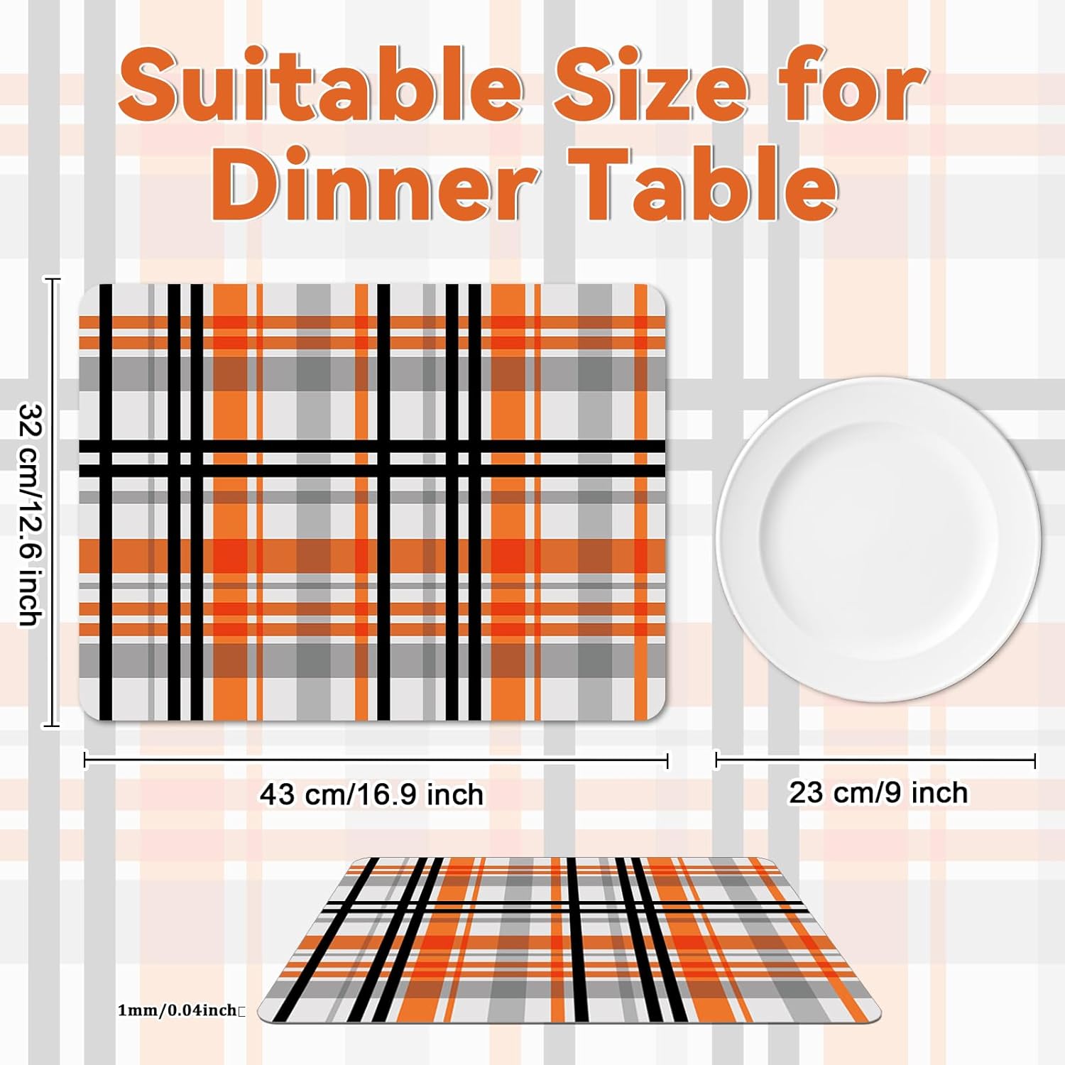 - High-Quality material:Buffalo plaid halloween placemats are crafted from plastic. Halloween fall seasonal table mats are waterproof and heat-proof,odorless and safe, making table mats durable and supporting long-term use.