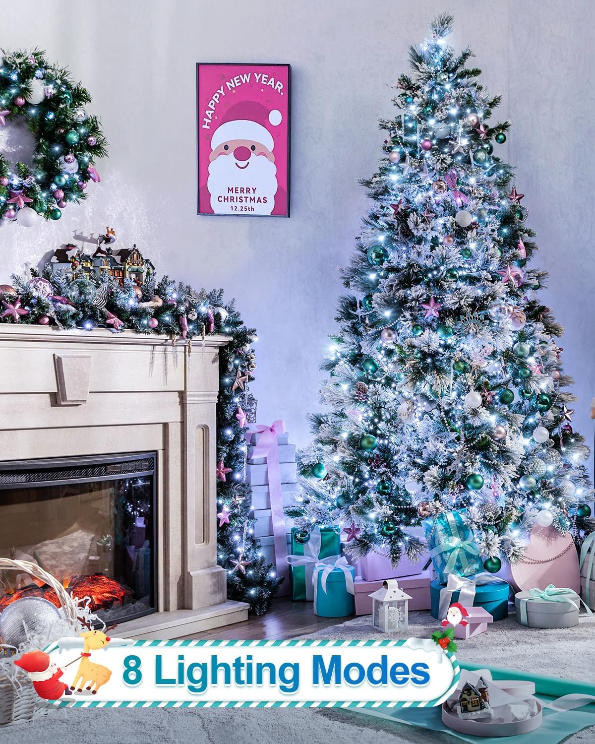 - 8 Lighting Modes & Dimming Function: Our Christmas lights indoor have 8 lighting modes: Steady On, Combination, In Waves, Sequential, Slo-Glo, Chasing/Flash, Slow Fade, and Twinkle/Flash. You can switch freely according to the occasion and mood. In addition, Cool White Christmas lights have 100%-75%-50%-25% 4-level adjust brightness, you can switch the brightness that make you feel the most comfortable