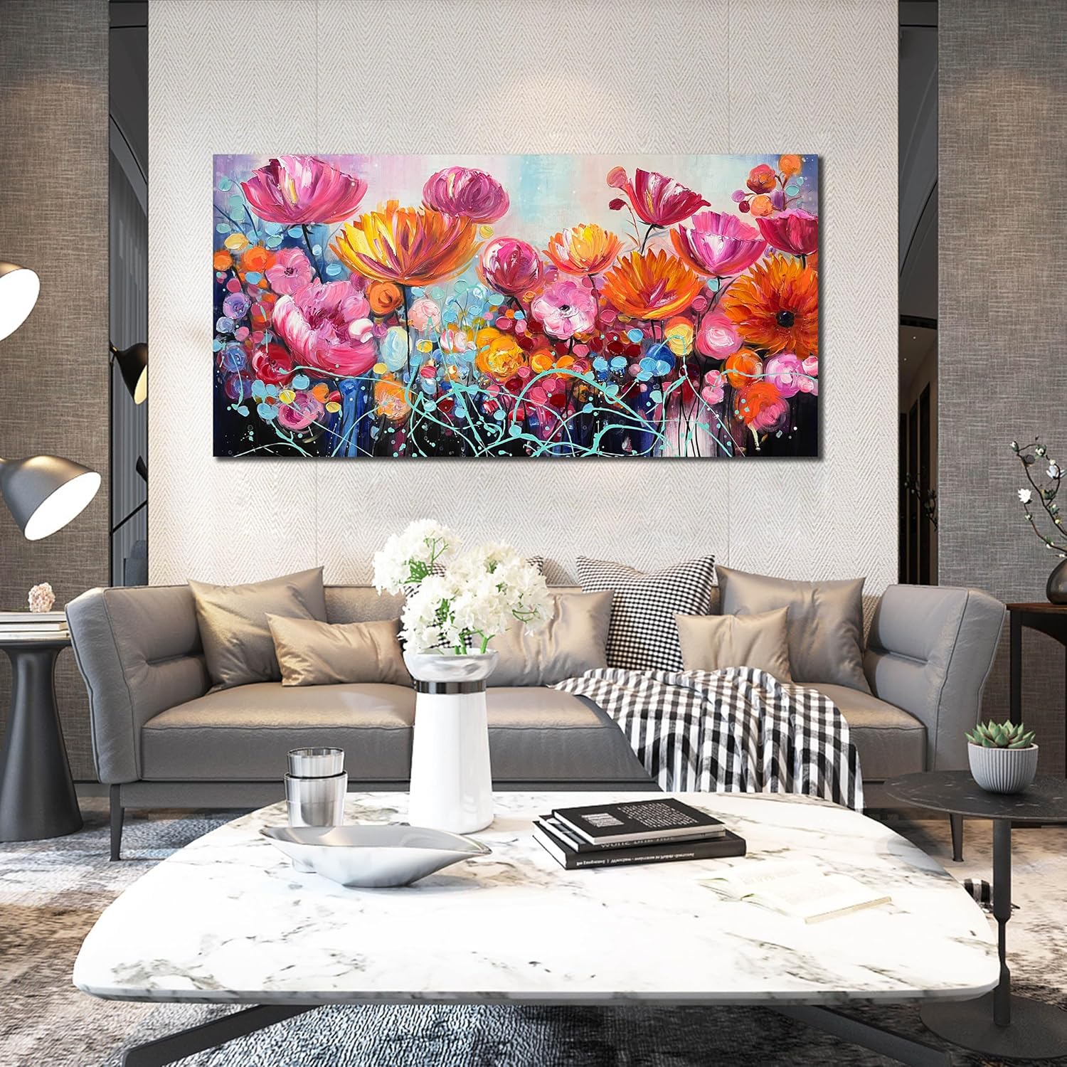 - FLORAL WALL ART CANVAS: The theme of this wall art prints is "Pink Flower". It make your room more personalized. There are many themed art wall decor in our store, such as cute animals, flowers, abstract art, graffiti, etc