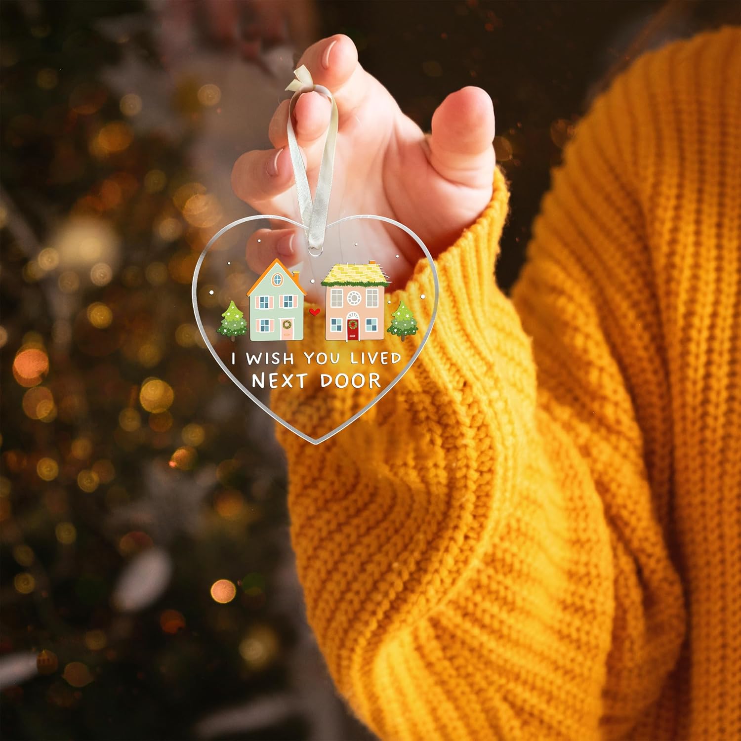 - ORNAMENT SET INCLUDES: You will receive 1x Acrylic Ornament, 1x Beige Ribbon and 1x Gift Box. The small hole in the ornament is threaded with our shining beige ribbon for easy hanging, which creates an elegant look for your Christmas tree.