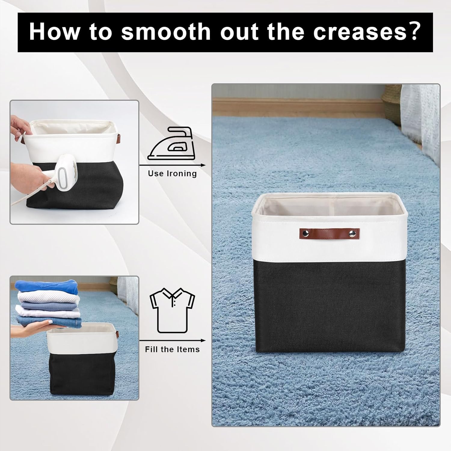 13x13 Cube Storage Bins, Collapsible Fabric Storage Box, 4 Pack Closet Baskets with Handles for Organizing, Shelf, Toys, Clothes, Home, Office, Nursery (Black&White)