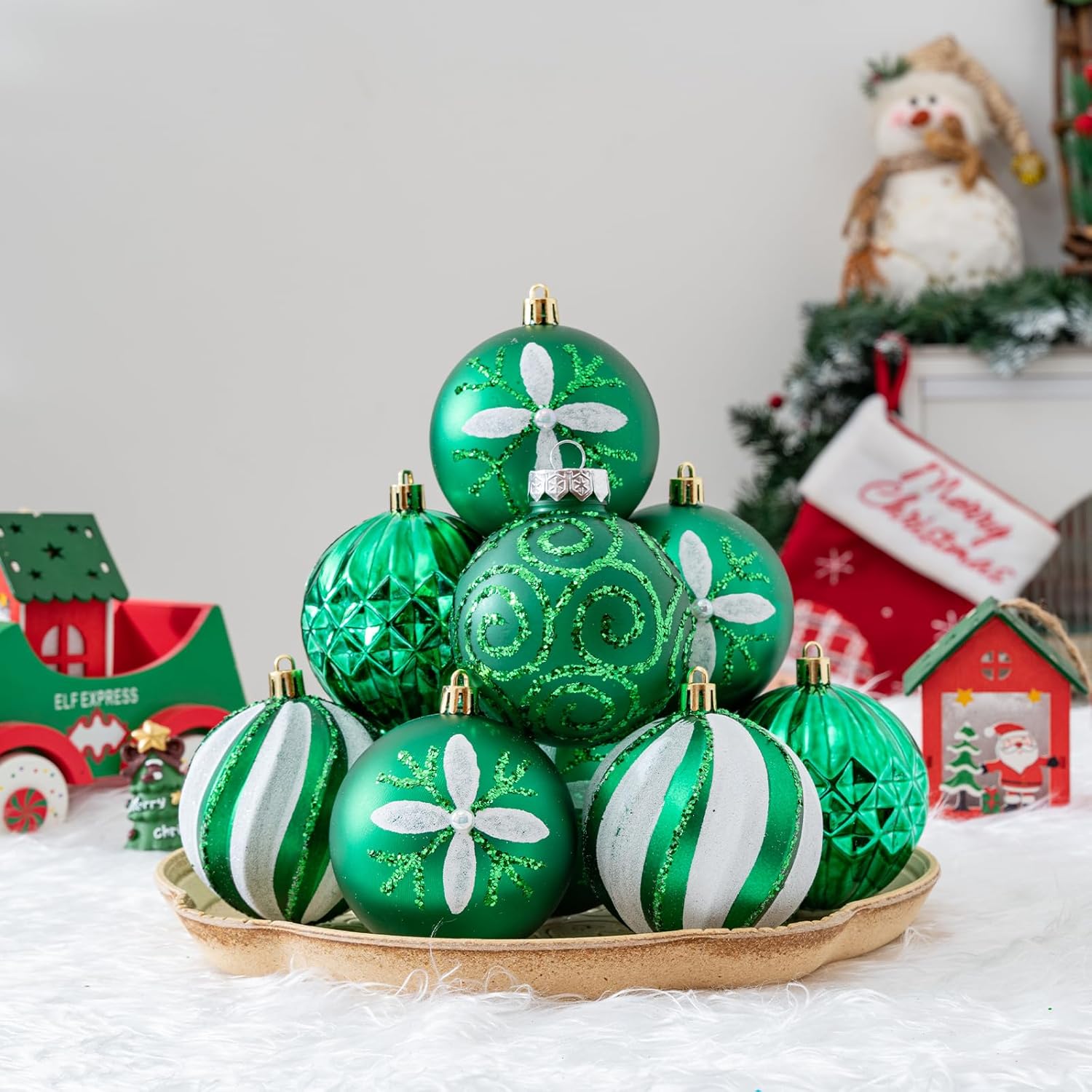 - 【SUPERIOR SHATTERPROOF】 These christmas ball ornaments are made of durable and shatterproof plastic. No sharp glass shards, but a blend of the shine of glass and the sturdiness of plastic, practical and safe for your family, ideal for families with children and pets