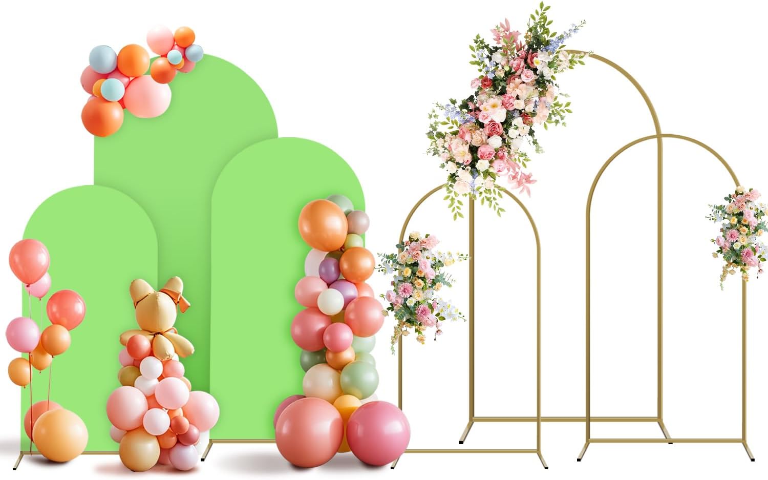 Arch Backdrop Stand and Cover Set, 3 Metal Balloon Arch Backdrop 4ft 5ft 6ft, Gold Arched Stand Frame for Wedding, Parties,Birthday, Backdrop Decorations (SageGreen,4ft+5ft+6ft)