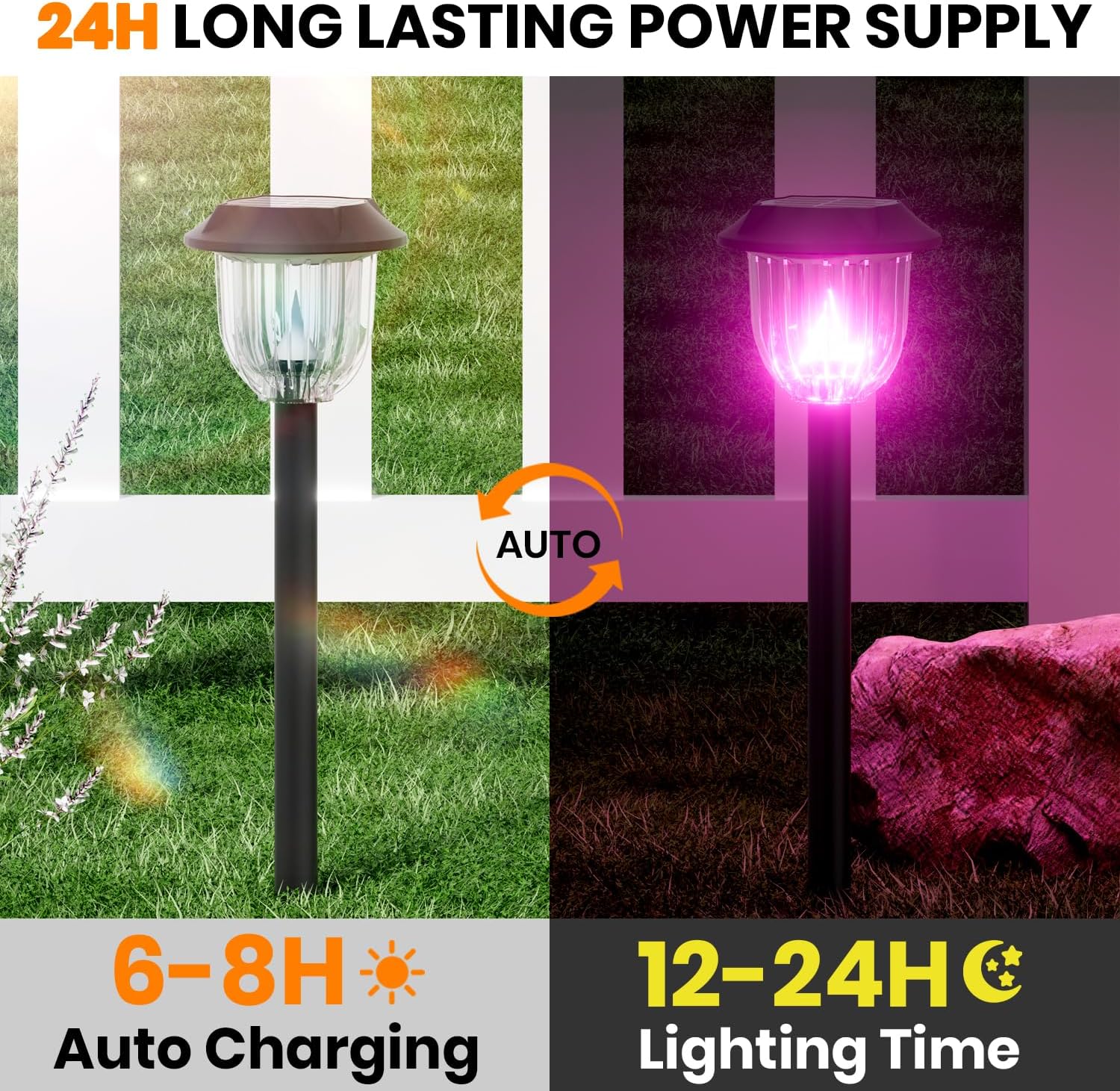 - ♻Effortless Installation & Smart Operation - Transform any outdoor area in minutes with these no-wire-needed solar lights - simply place the stakes and enjoy instant ambiance! The intelligent light sensor automatically activates illumination at dusk and switches off at dawn, while the solar panel efficiently charges even on cloudy days. Perfect for creating beautiful solar lights outdoor pathway arrangements without electrical expertise or ongoing costs.