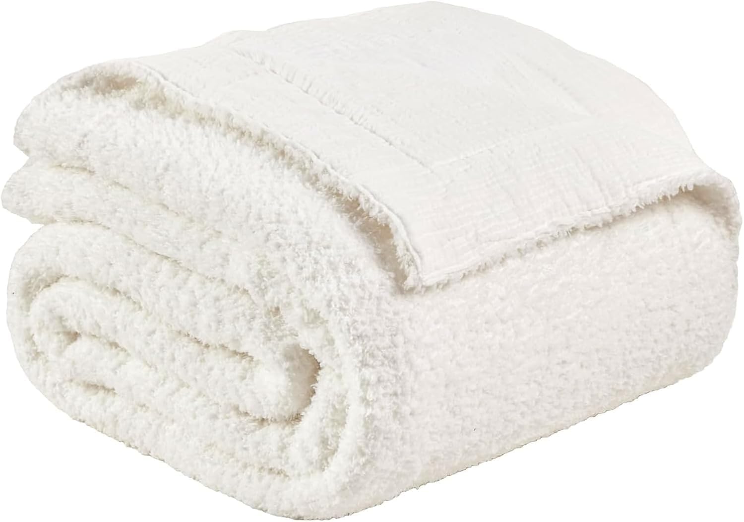 - 【Creative Double-Sided】Perfect combination of muslin cotton and fleece, making this throw blanket breathable and skin-friendly as well as warm and soft.