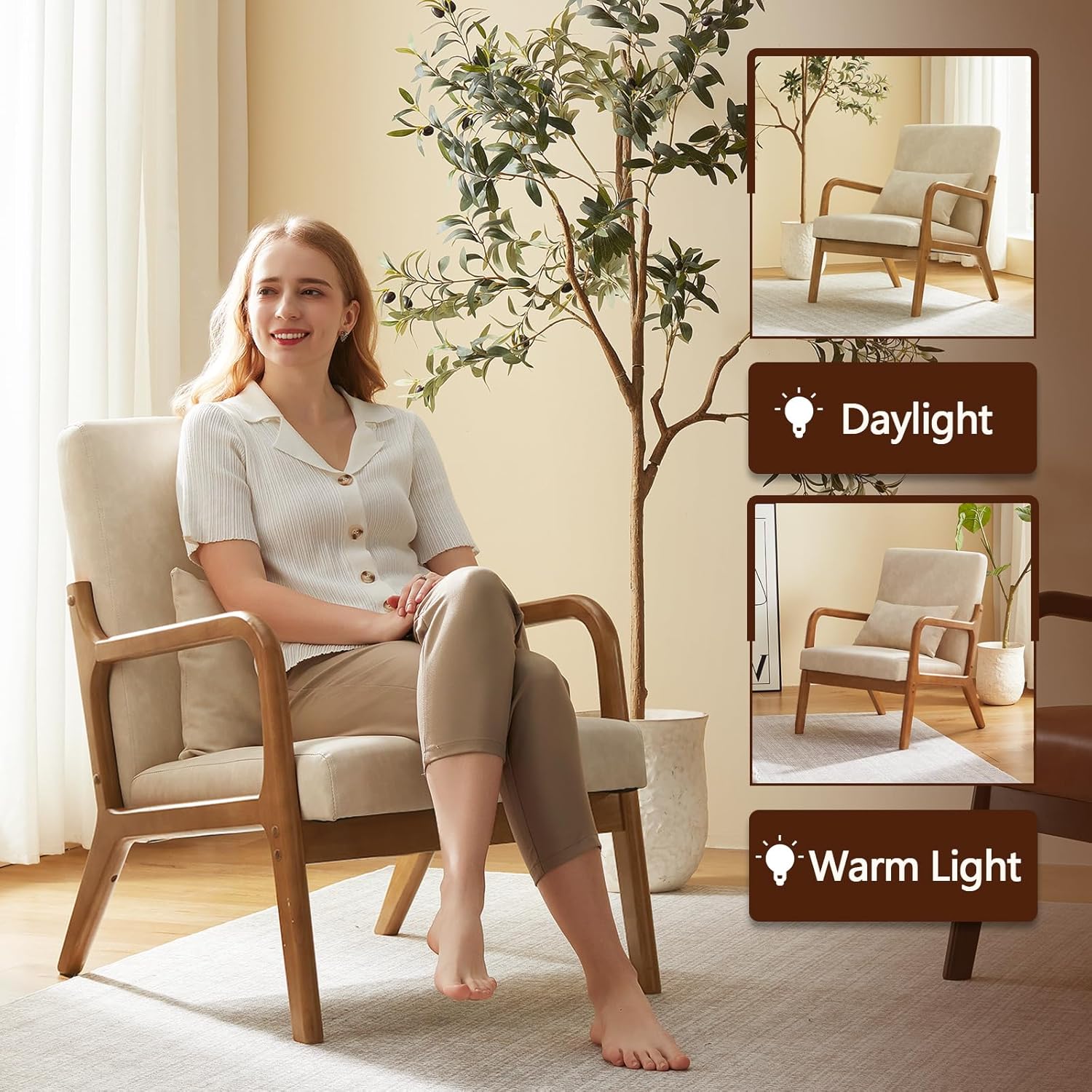 - Humanized Design: Ergonomically designed armrests and high backrest allow your spine and hands to relax. Matching lumbar pillow provides comfort and adds a modern touch to the accent armchair