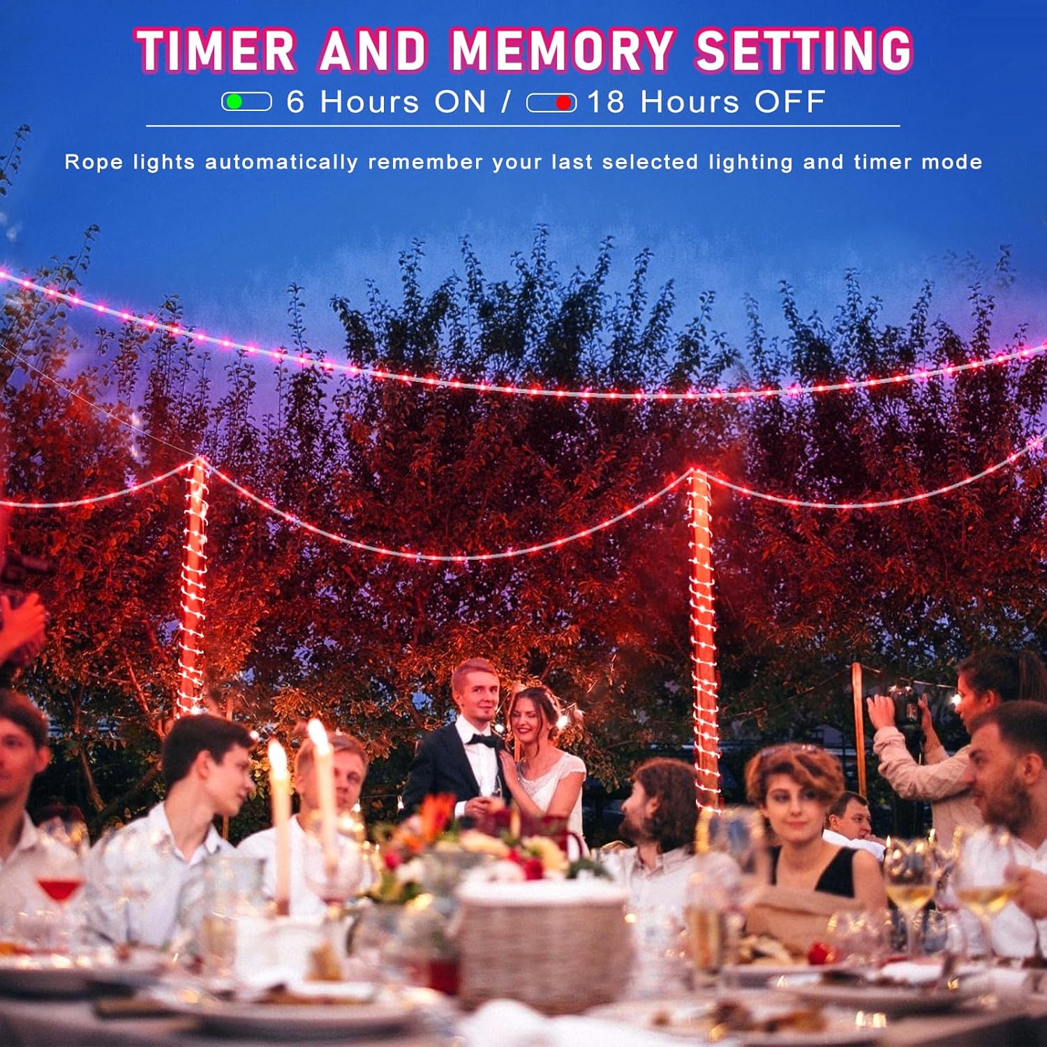 100FT 300 LED Rope Lights Outdoor, Connectable and Flexible Tube Lights with 8 Modes, Waterproof Rope Lighting Indoor for House, Deck, Garden, Backyard, Pool, Patio, Tree Decorations - Red