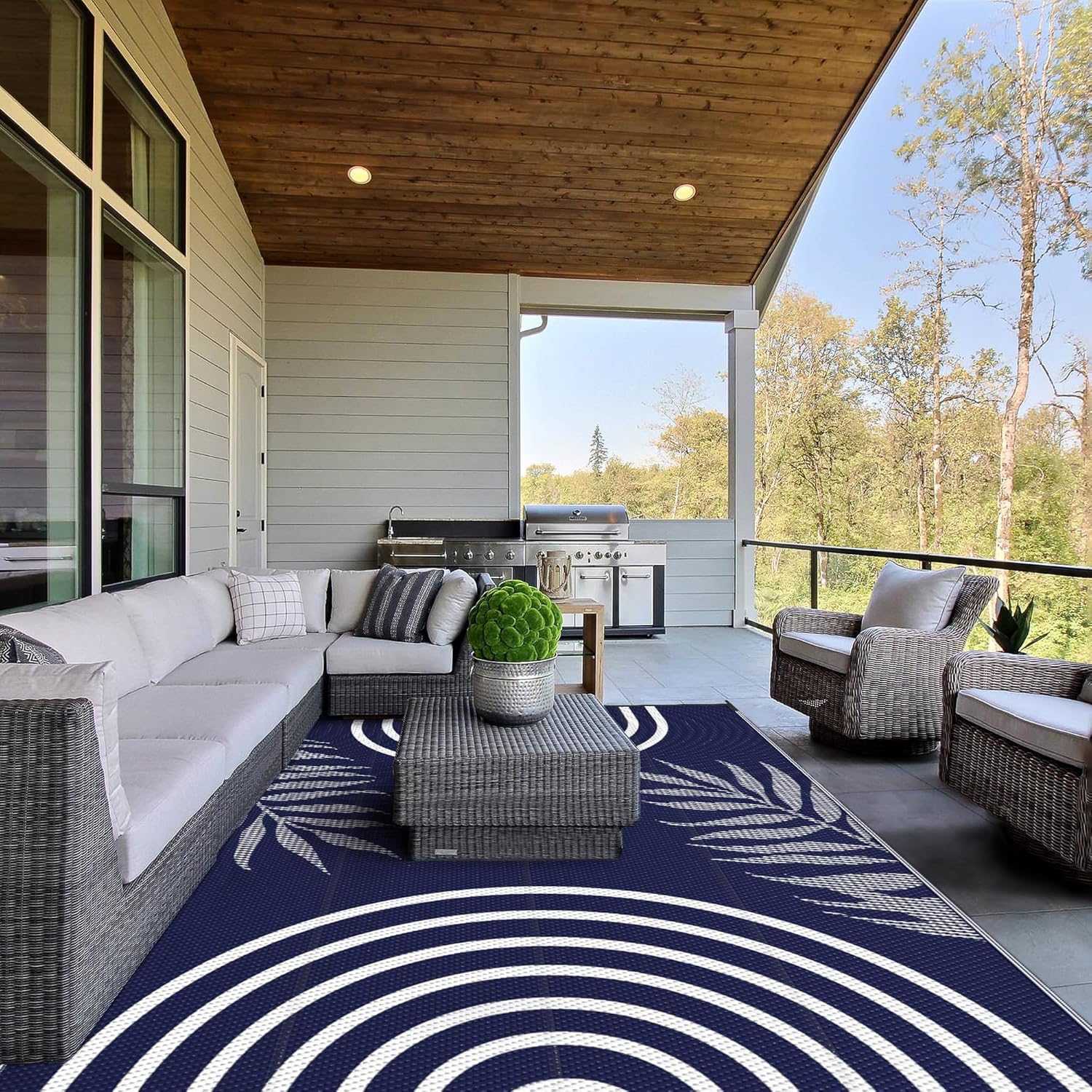 - Waterproof & Easy To Clean: Our indoor and outdoor rugs are waterproof, stain resistant, non-slip, easy to clean and well-breathable. As an outdoor patio rug or picnic mat, you don't have to worry about drink spills, food stains, sand or dirt, just rinse with water or wipe with a damp cloth. Plus, the breathable material allows it to air dry in minutes. You can enjoy your exclusive leisure time with your family or friends outdoors or indoors without any worries
