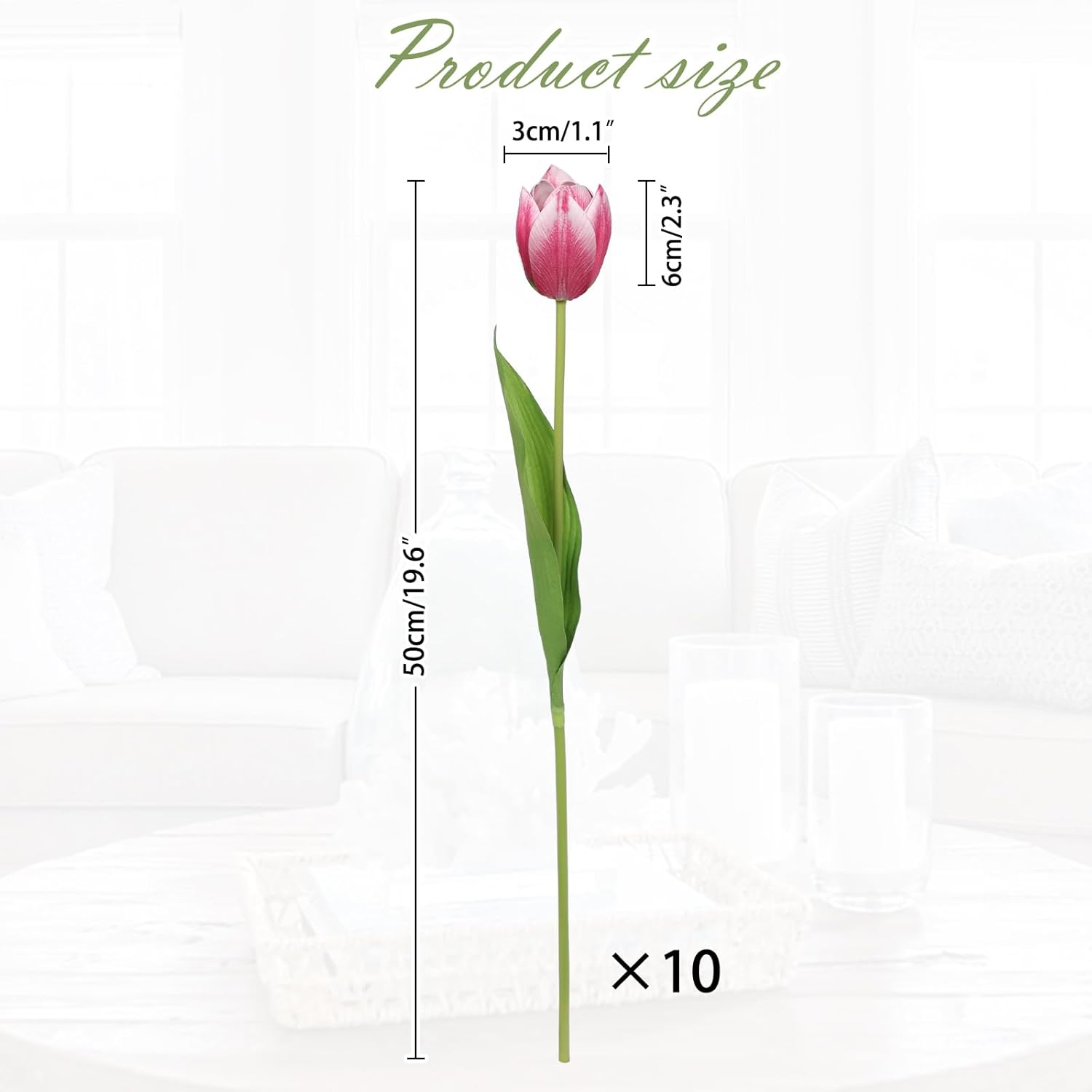 - SET OF 10 FULL BLOOM STEMS – CUSTOMIZABLE FLORAL ARRANGEMENTS: Each set includes 10 artificial tulip stems, perfect for creating lush bouquets, elegant centerpieces, or minimalist single-stem vases. Ideal for table decor, office arrangements, bedroom accents, or DIY floral projects, these tulips offer endless styling possibilities