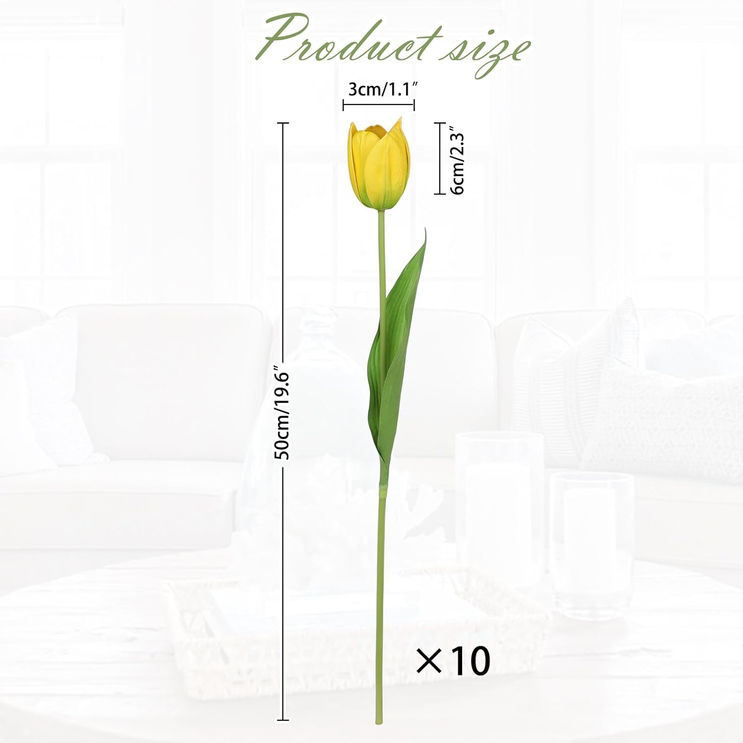 Artificial Tulips Flowers – 20" Long Stem Faux Tulips, 10PCS Real Touch Fake Yellow Tulip for Vase, Farmhouse, Kitchen, Spring & Wedding Home Decor