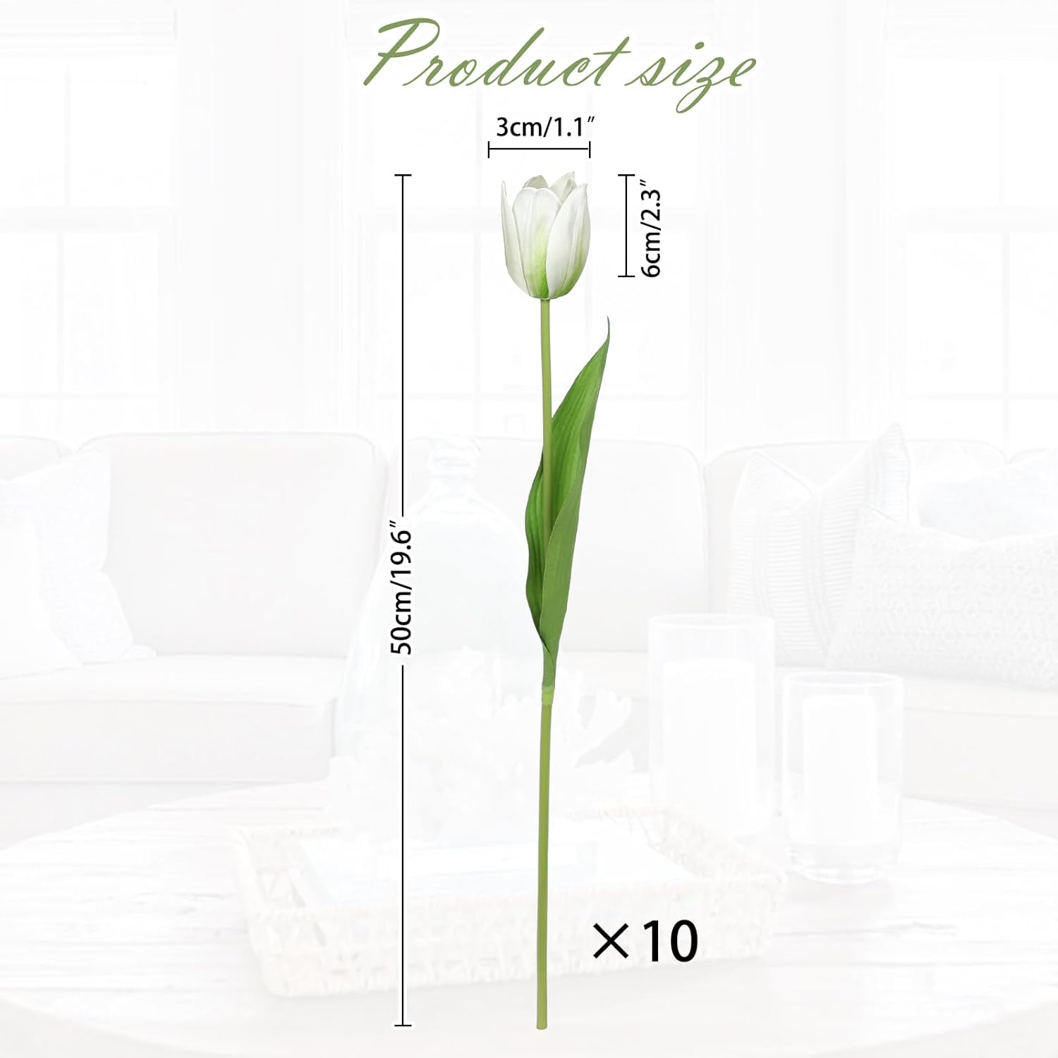 Artificial Tulips Flowers – 20" Long Stem Faux Tulips, 10PCS Real Touch Fake White Tulip for Vase, Farmhouse, Kitchen, Spring & Wedding Home Decor
