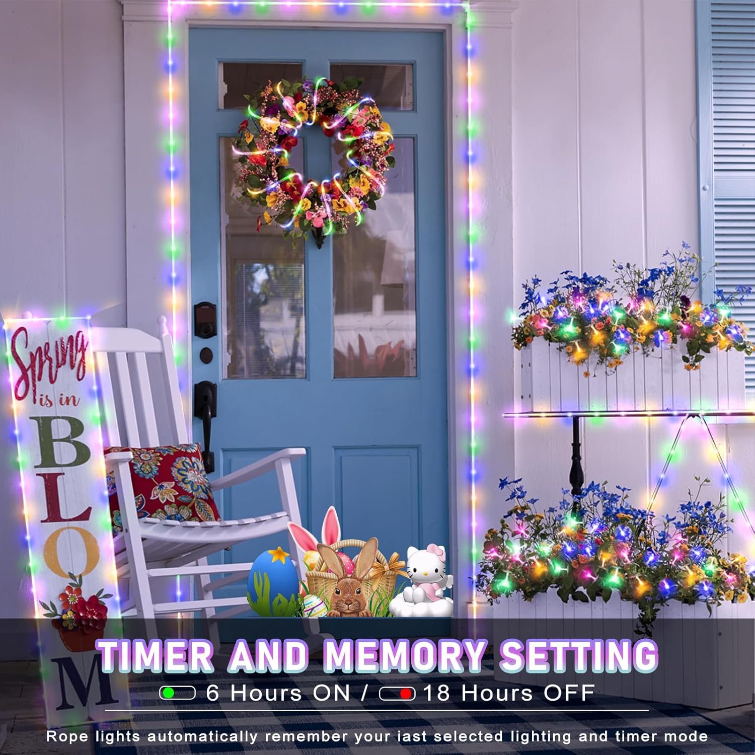 - 【IP65 Waterproof 】- IP65 Waterproof design, they are suitable for all weather use, remaining bright and sparkling even during strong rain and windy days. The outdoor rope lights is ideal for year-round outdoor decor and can illuminate gazebos, canopy, corridors, gardens, and patios. But please note the plug is not waterproof.