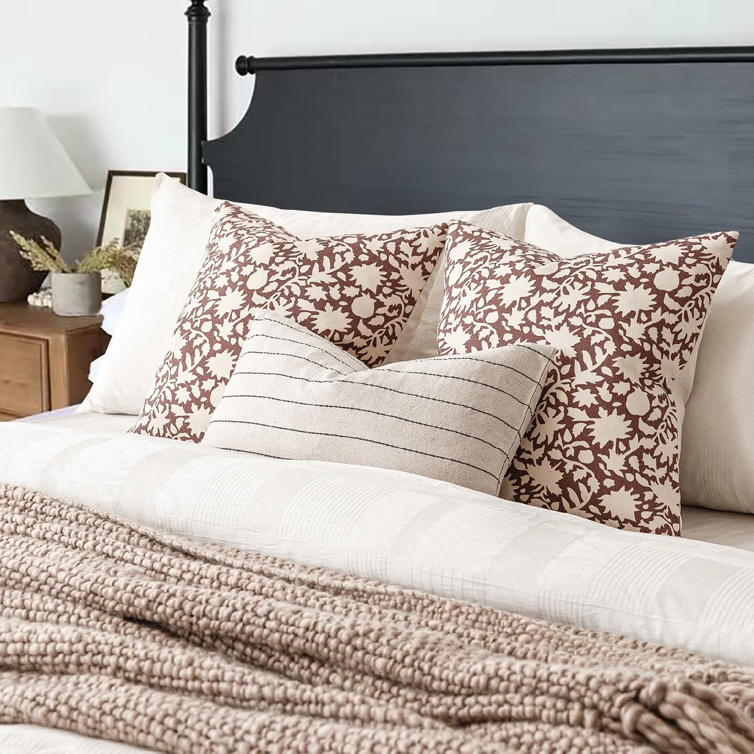 Foindtower Set of 2 Decorative Neutral Floral Throw Pillow Covers Accent Farmhouse Cushion Covers Boho Lumbar Pillowcase for Couch Sofa Bedroom Living Room Home Decor Outdoor,12×20 Inch,Wine Red