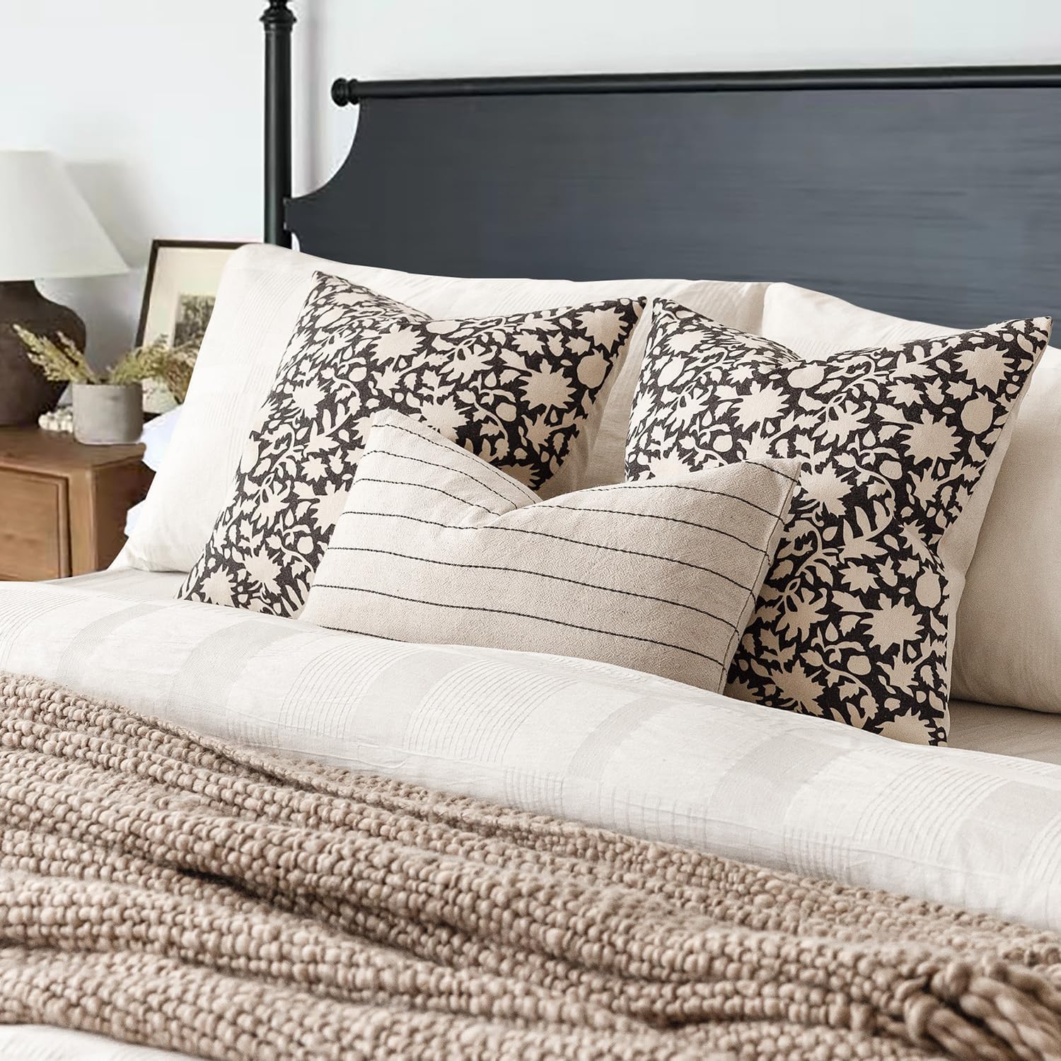 Foindtower Set of 2 Decorative Neutral Floral Throw Pillow Covers Accent Farmhouse Cushion Covers Boho Vintage Pillowcase for Couch Sofa Bedroom Living Room Home Decor Outdoor24×24 Inch,Black