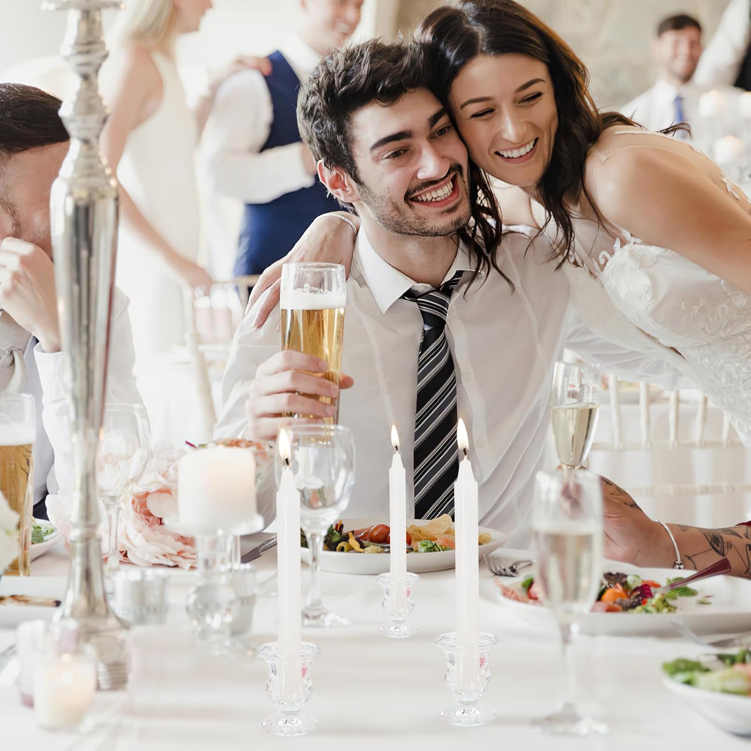 Glass Candle Holders Set of 24- Clear Candlestick Holders & Taper Candle Holders for Wedding Centerpiece Table Decorations, Valentines Day Decor, Party and Romantic Dinner