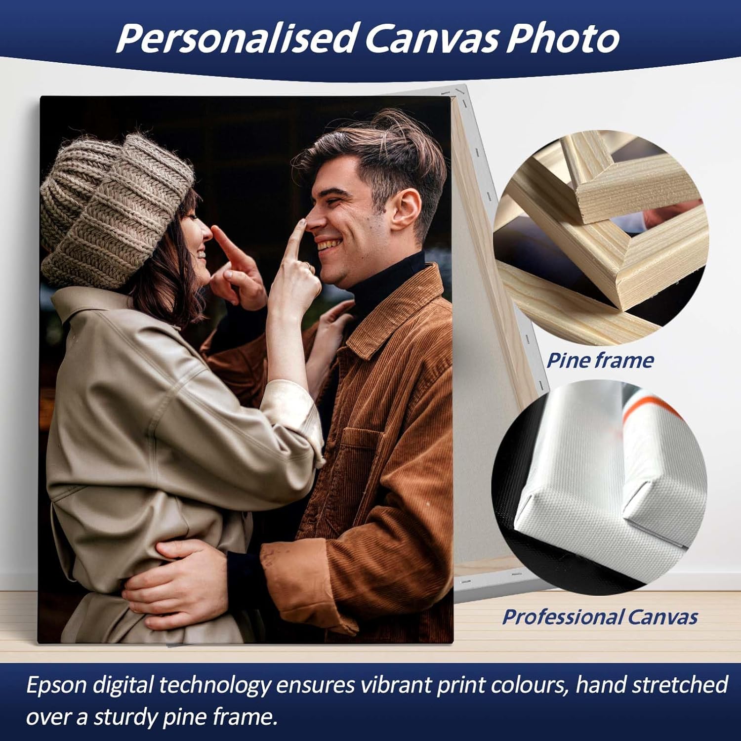 - CUSTOM CANVAS PRINTS WITH YOUR PHOTOS: The high quality photo canvas is stretch-bound on a sturdy solid wood frame (with hanging hooks), you can easily hang it on the wall.