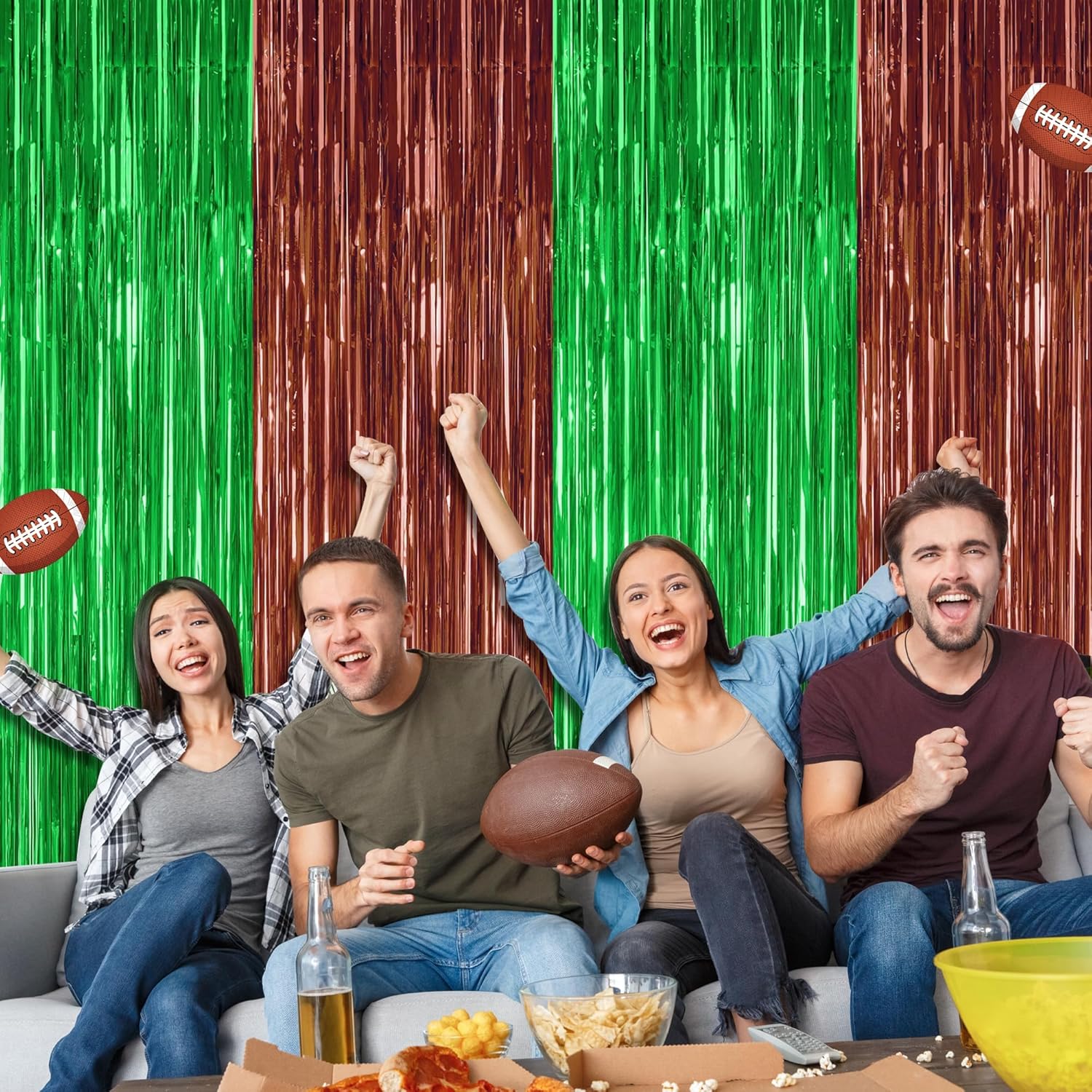 - Widely Use: These tinsel backdrop are perfect for football photo backdrop, football party decorations create a festive atmosphere at big sporting events, football celebrations, and so on.