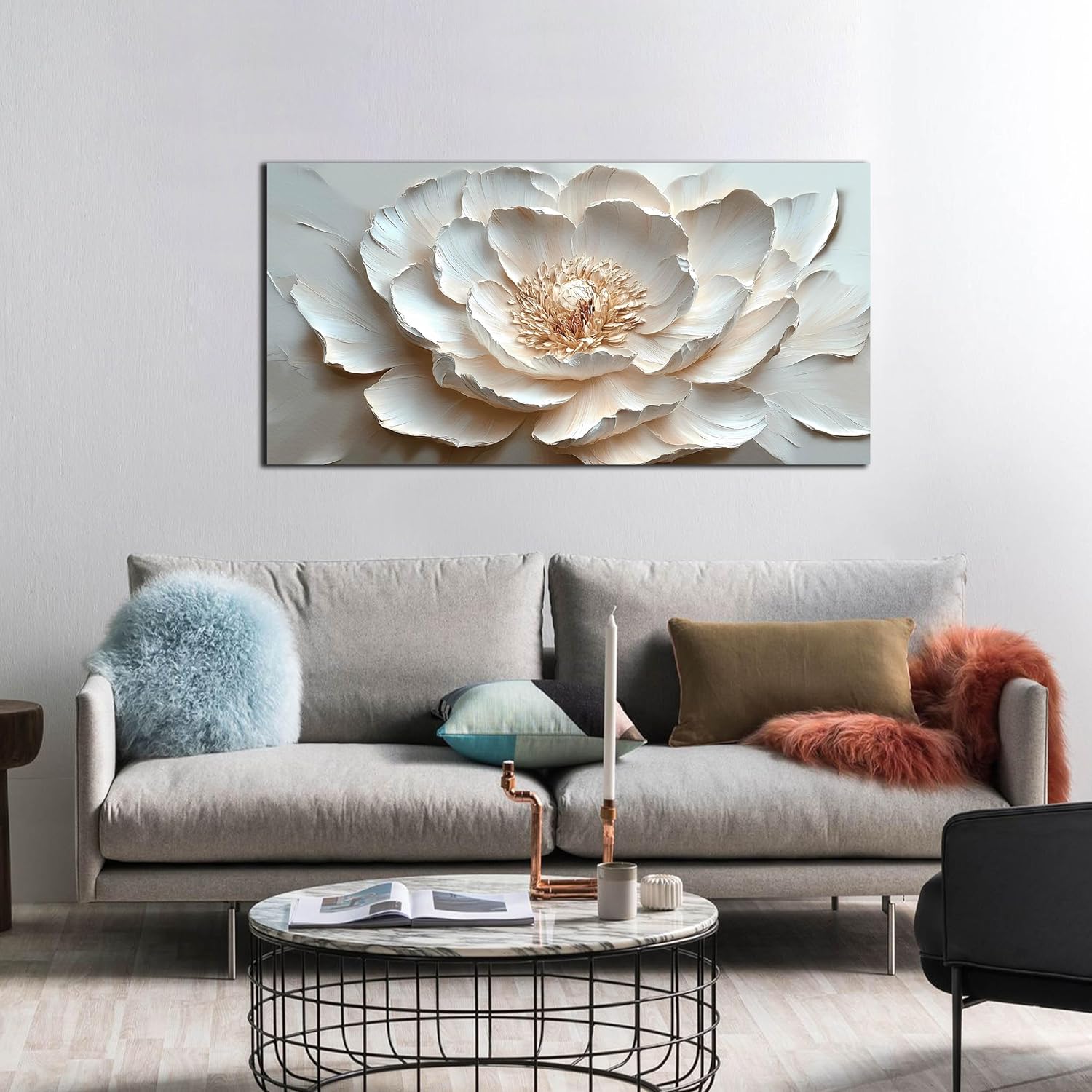 Flower Art Wall Decor for Living Room - White/Pink/Beige Canvas Wall Art for Office - Modern Wall Decor for Bedroom Women Size 20 x 40 Inch