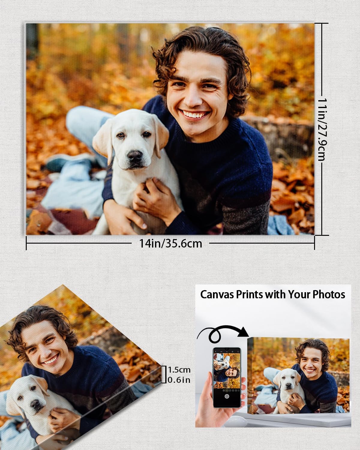 • 📸【Personalized Canvas Prints】: Transform your cherished memories into custom canvas wall art. Upload your photos, and we’ll create stunning canvas prints tailored just for you – a perfect way to display your special moments